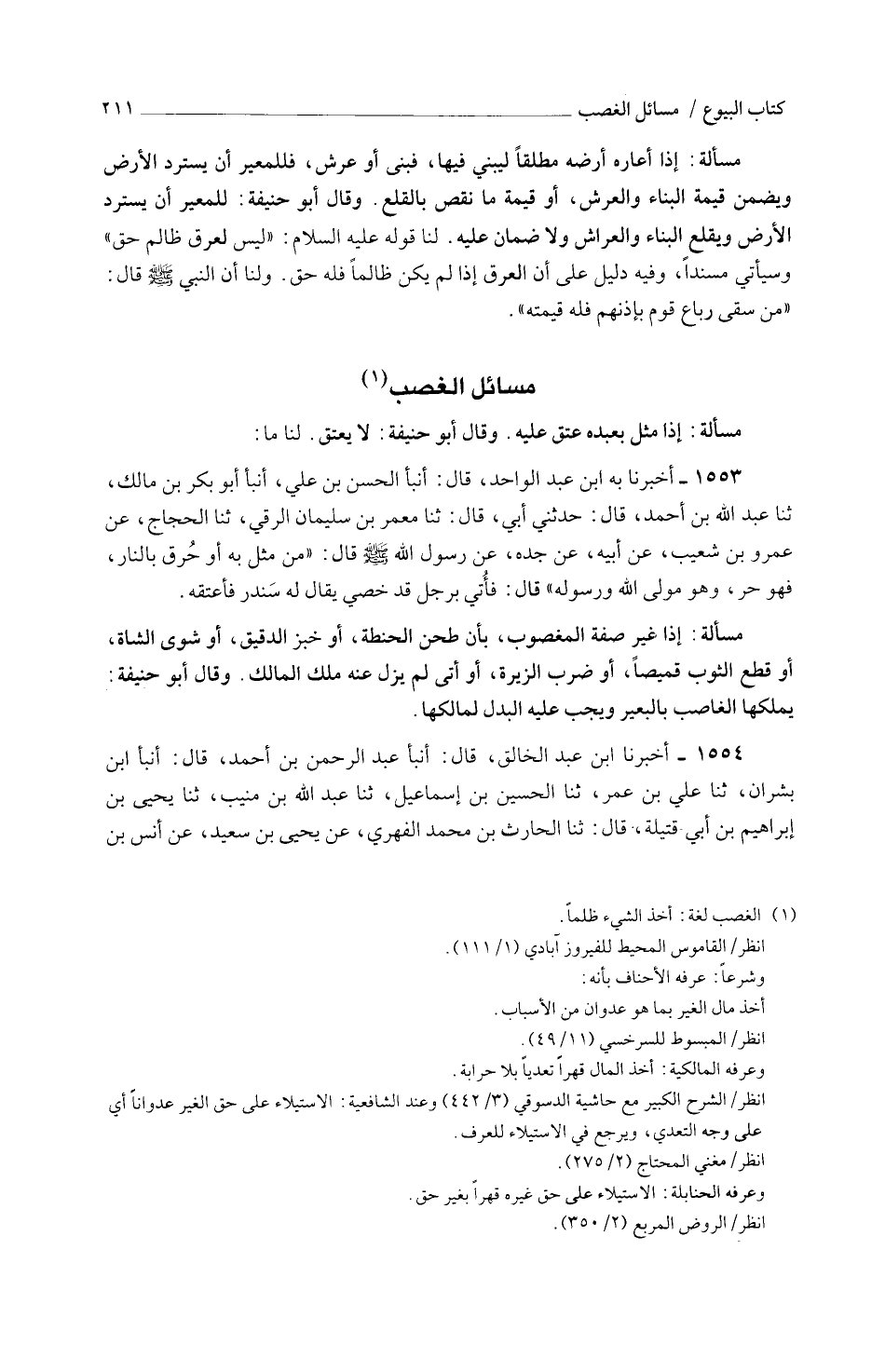 1554 - أَخْبَرَنَا ابْنُ عَبْدِ الْخَالِقِ قَالَ أَنْبَأَ عَبْدُ الرَّحْمَنِ بْنُ أَحْمَدَ قَالَ أنبأ ابْن بَشرَان ثَنَا عَليّ بن عمر ثَنَا الْحُسَيْن بن إِسْمَاعِيل ثَنَا عبد الله بن منيب ثَنَا يَحْيَى بْنُ إِبْرَاهِيمَ بْنِ أَبِي قتيلة قَالَ ثَنَا الْحَارِثُ بْنُ مُحَمَّدٍ الْفِهْرِيُّ عَنْ يَحْيَى بْنِ سَعِيدٍ عَنْ أَنَسٍ بْنِ