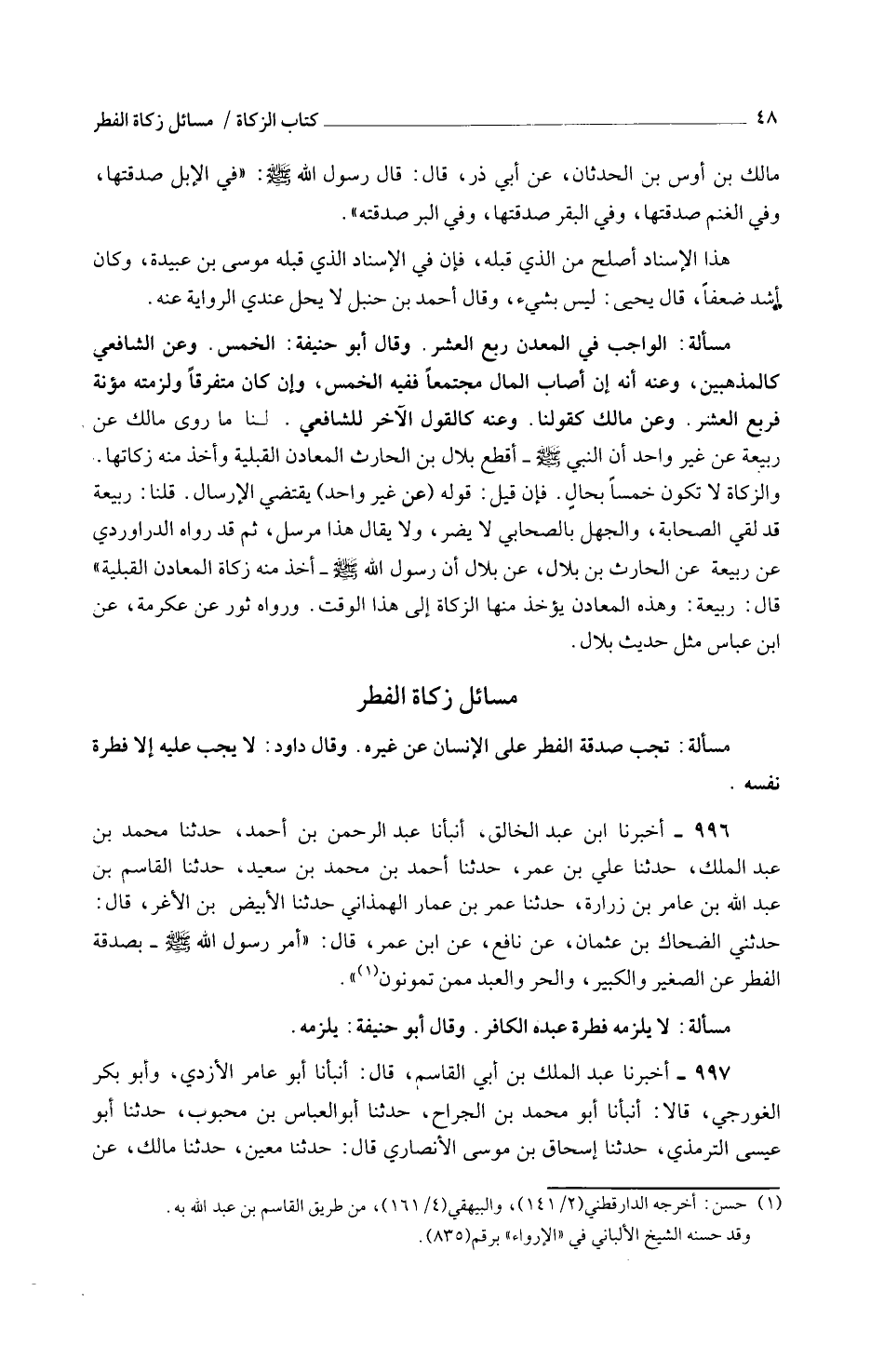 997 - أَخْبَرَنَا عَبْدُ الْمَلِكِ بْنُ أَبِي الْقَاسِمِ قَالَ أَنْبَأَنَا أَبُو عَامِرٍ الْأَزْدِيّ وأَبُو بَكْرٍ الْغُورَجِيُّ قَالَا أَنْبَأَنَا أَبُو مُحَمَّد بن الْجَرَّاحِ حَدَّثَنَا أَبُو الْعَبَّاسِ بْنُ مَحْبُوبٍ حَدَّثَنَا أَبُو عِيسَى التِّرْمِذِيُّ حَدَّثَنَا إِسْحَاقُ بْنُ مُوسَى الْأَنْصَارِيُّ قَالَ حَدثنَا معِين حَدَّثَنَا مَالِكٌ عَنْ