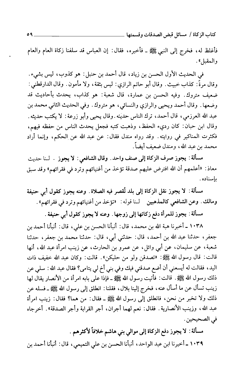 مَسْأَلَةٌ يَجُوزُ لِلْمَرْأَةِ دَفْعُ زَكَاتِهَا إِلَى زَوْجِهَا وَعَنْهُ لَا يَجُوزُ كَقَوْلِ أَبِي حَنِيفَةَ