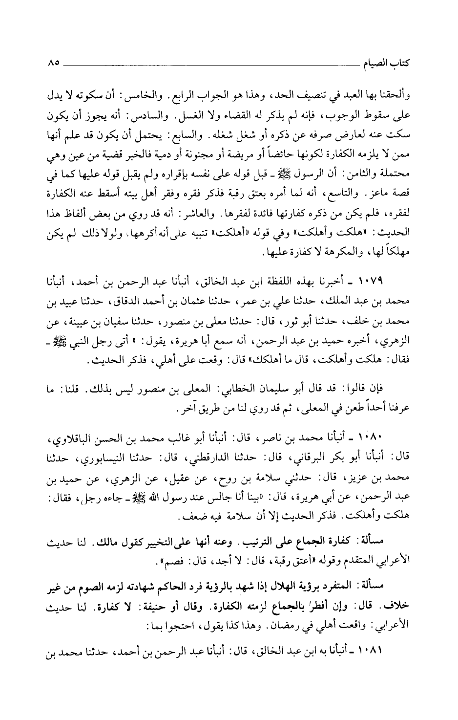 1080 - أَنْبَأَنَا مُحَمَّدُ بْنُ نَاصِرٍ قَالَ أَنْبَأَنَا أَبُو غَالب مُحَمَّد بن حسن الْبَاقِلَّاوِيُّ قَالَ أَنْبَأَنَا أَبُو بَكْرٍ الْبَرْقَانِيُّ قَالَ حَدَّثَنَا الدَّارَقُطْنِيُّ قَالَ حَدَّثَنَا النَّيْسَابُورِيُّ حَدَّثَنَا مُحَمَّدُ بْنُ عَزِيزٍ قَالَ حَدَّثَنِي سَلَامَةُ بْنُ رَوْحٍ عَنْ عُقَيْلٍ عَنِ الزُّهْرِيِّ عَنْ حُمَيْدِ بْنِ عَبْدِ الرَّحْمَنِ عَنْ أَبِي هُرَيْرَةَ قَالَ بَيْنَا أَنا جَالس عِنْدَ رَسُولِ اللَّهِ صَلَّى اللَّهُ عَلَيْهِ وَسَلَّمَ جَاءَهُ رَجُلٌ فَقَالَ هَلَكت وأهلكت فَذكر الحَدِيث إِلَّا أَنَّ سَلَامَةَ فِيهِ ضَعْفٌ