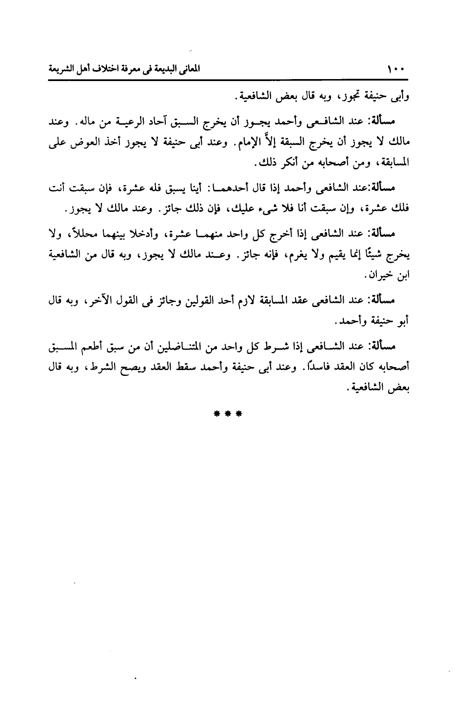 مَسْأَلَةٌ: عِنْدَ الشَّافِعِيِّ إذا أخرج كل واحد منهما عشرة، وأدخلا بينهما محللاً، ولا يخرج شيئًا إنما يقيم ولا يغرم، فإنه جائز. وعند مالك لا يجوز، وبه قال من الشَّافِعِيَّة ابن خيران.