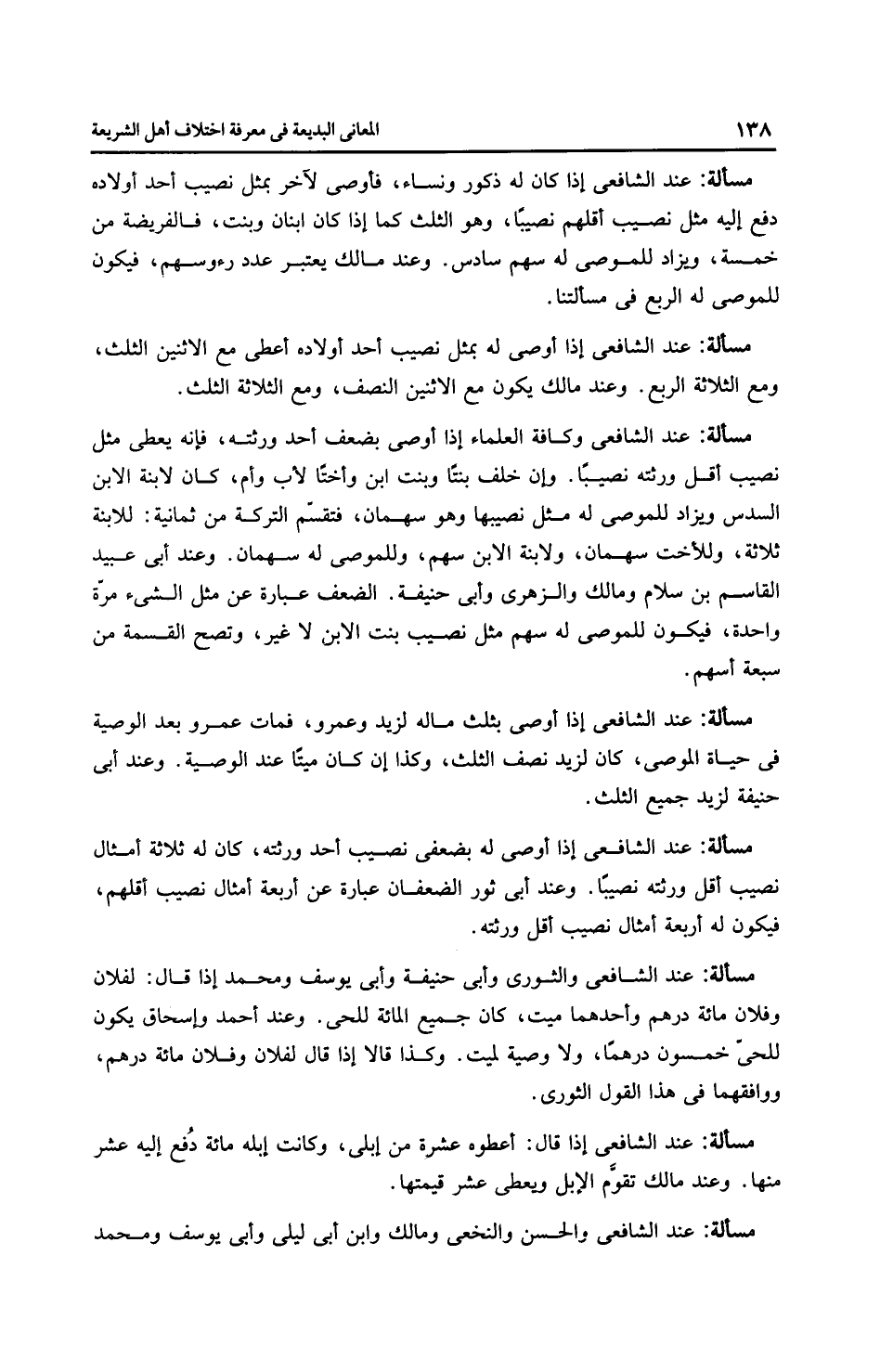 مَسْأَلَةٌ: عِنْدَ الشَّافِعِيِّ: الحسن والنَّخَعِيّ وَمَالِك وابن أبي ليلى وأَبِي يُوسُفَ ومحمد