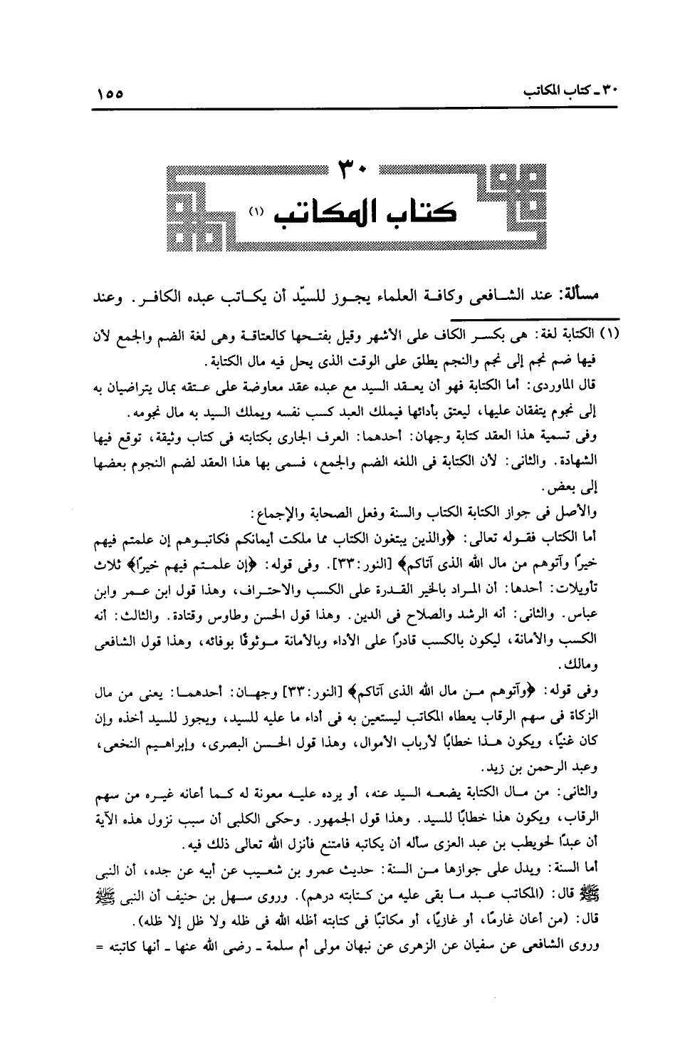 مَسْأَلَةٌ: عِنْدَ الشَّافِعِيِّ وكافة العلماء يجوز للسيّد أن يكاتب عبده الكافر. وعند