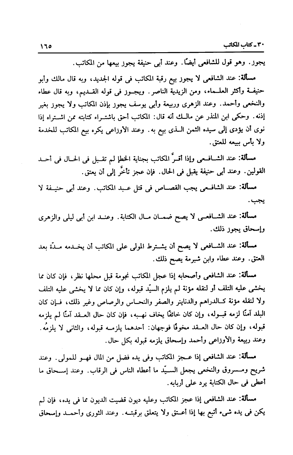 مَسْأَلَةٌ: عِنْدَ الشَّافِعِيِّ إذا عجز المكاتب وعليه ديون قضيت الديون مما في يده، فإن لم يكن في يده شيء أتبع بها إذا أعتق ولا يتعلَّق برقبته. وعند الثَّوْرِيّ وَأَحْمَد وإِسْحَاق