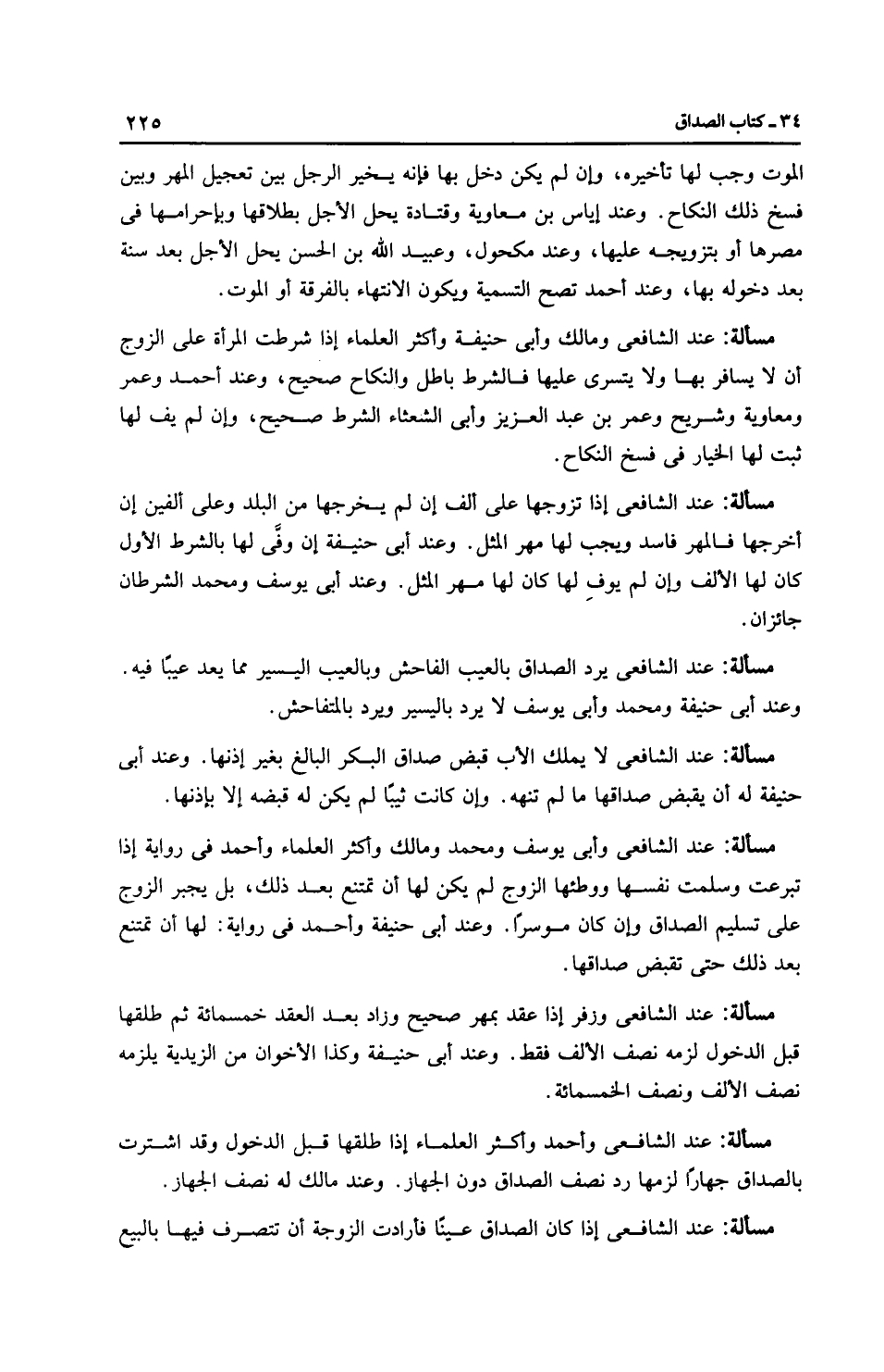 مَسْأَلَةٌ: عِنْدَ الشَّافِعِيِّ يرد الصداق بالعيب الفاحش وبالعيب اليسير مما يعد عيبًا فيه. وعند أَبِي حَنِيفَةَ ومُحَمَّد وأَبِي يُوسُفَ لا يرد باليسير ويرد بالمتفاحش.