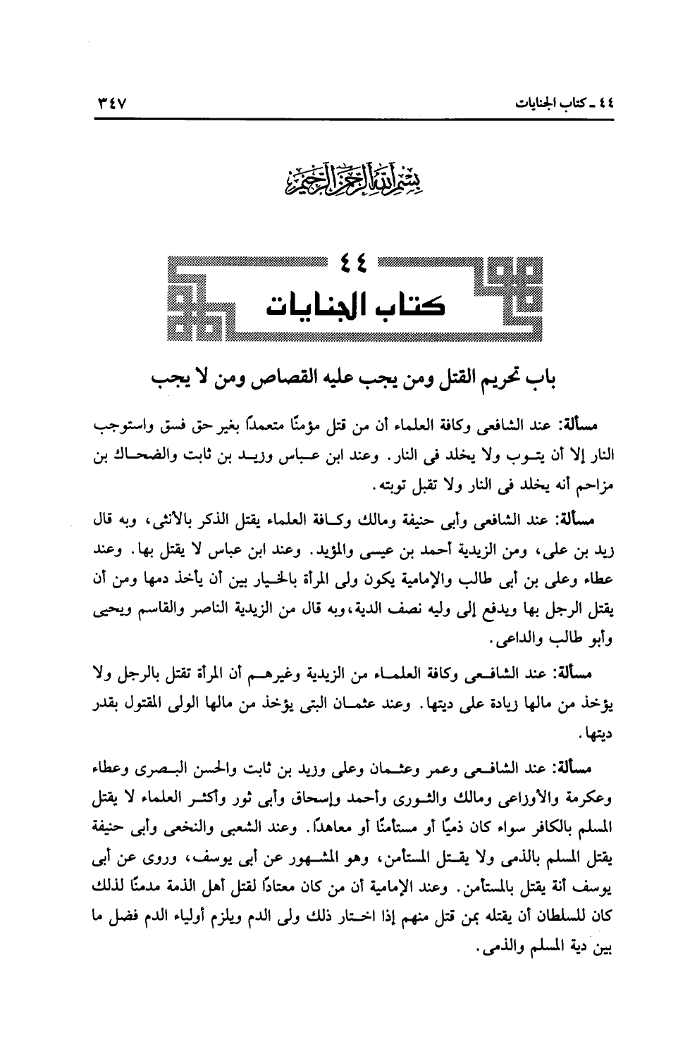 باب تحريم القتل ومن يجب عليه القصاص ومن لا يجب