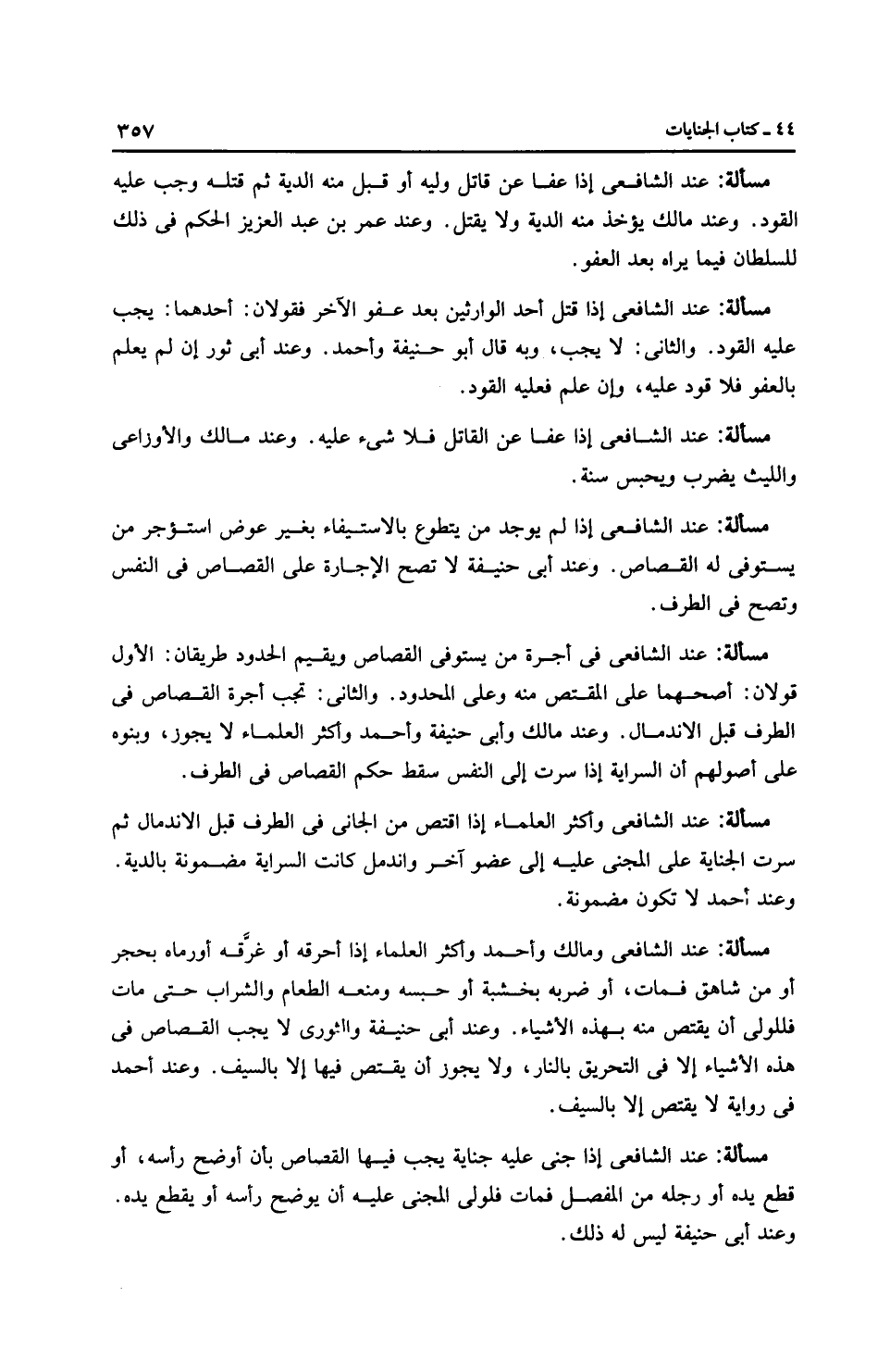 مَسْأَلَةٌ: عِنْدَ الشَّافِعِيِّ إذا عفا عن قاتل وليه أو قبل منه الدية ثم قتله وجب عليه القود. وعند مالك يؤخذ منه الدية ولا يقتل. وعند عمر بن عبد العزيز الحكم في ذلك للسلطان فيما يراه بعد العفو.
