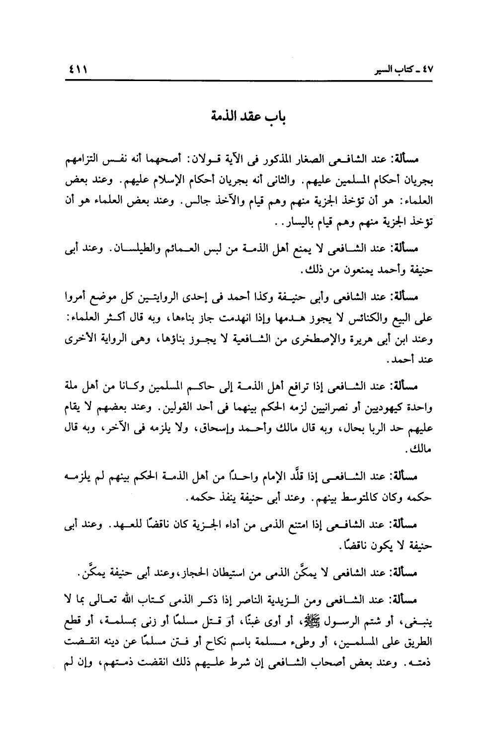 مَسْأَلَةٌ: عِنْدَ الشَّافِعِيِّ إذا امتنع الذمي من أداء الجزية كان ناقضًا للعهد. وعند أبي حَنِيفَةَ لا يكون ناقضًا.