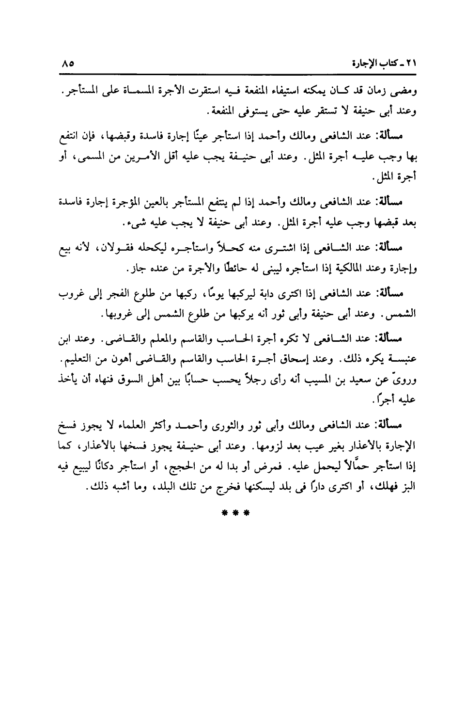 مَسْأَلَةٌ: عِنْدَ الشَّافِعِيِّ إذا اكترى دابة ليركبها يومًا، ركبها من طلوع الفجر إلى غروب الشمس. وعند أَبِي حَنِيفَةَ وأَبِي ثَورٍ أنه يركبها من طلوع الشمس إلى غروبها.