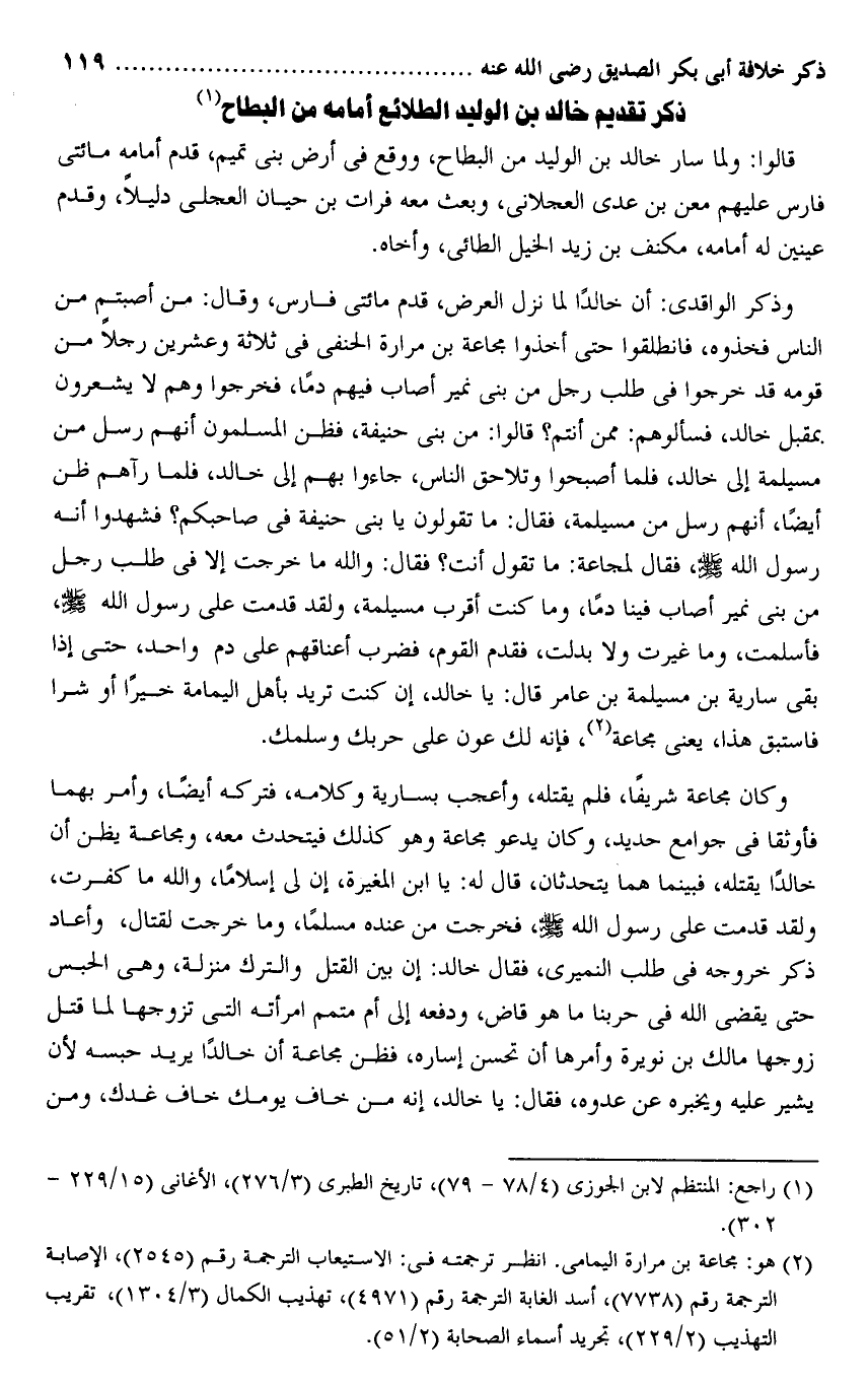 ذكر تقديم خالد بن الوليد الطلائع أمامه من البطاح «1»