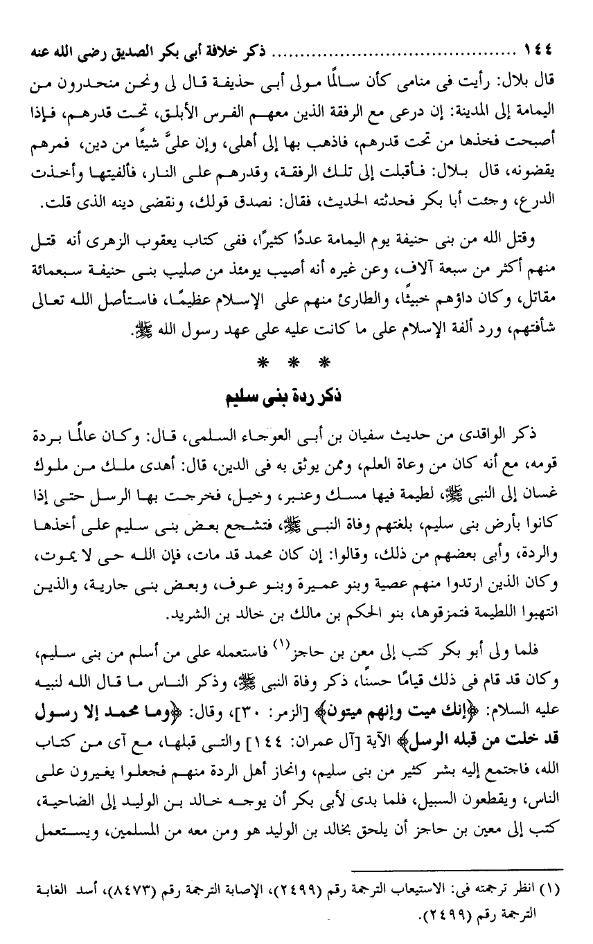ذكر ردة بنى سليم