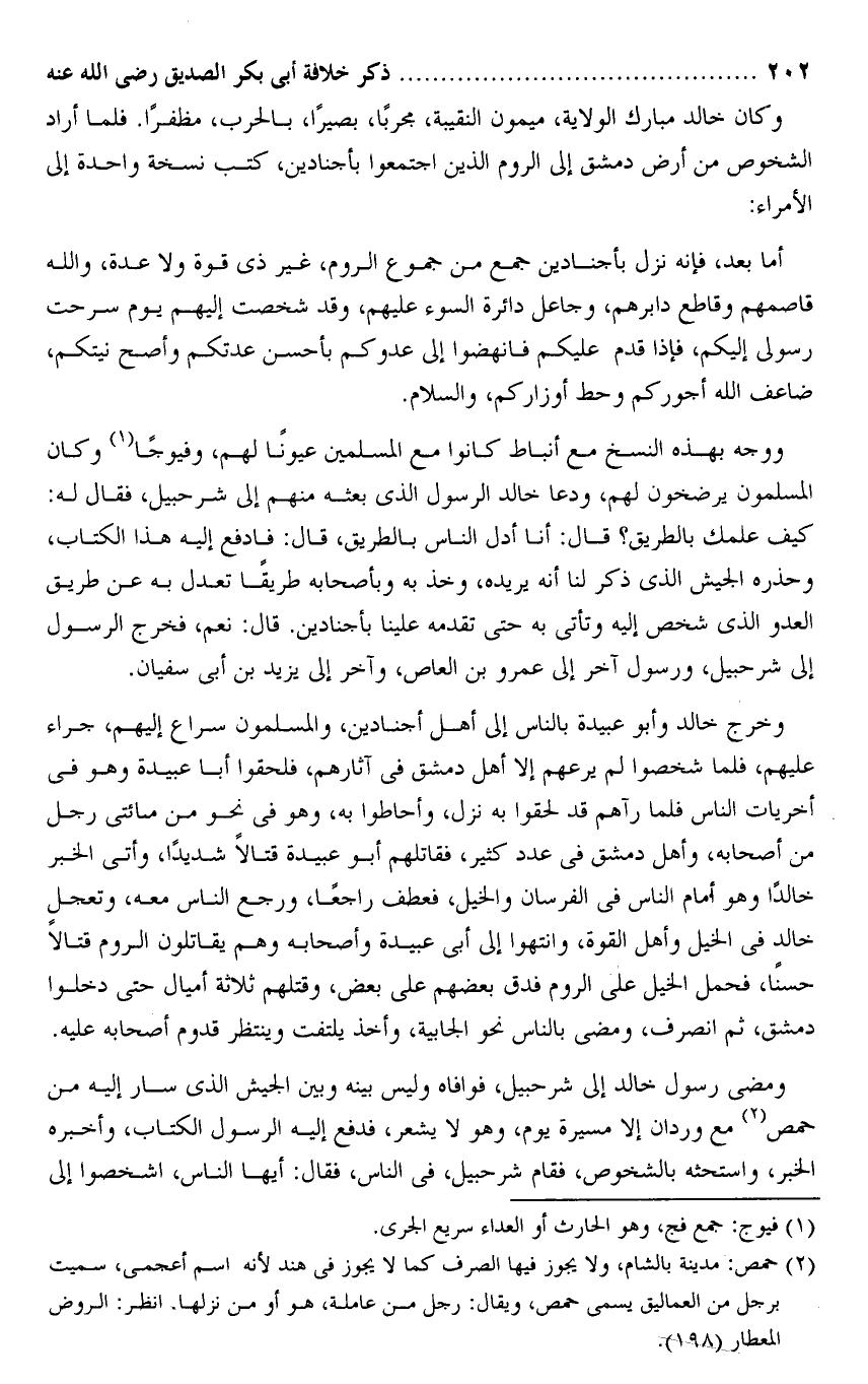 ووجه بهذه النسخ مع أنباط كانوا مع المسلمين عيونا لهم، وفيوجا «1» وكان المسلمون يرضخون لهم، ودعا خالد الرسول الذى بعثه منهم إلى شرحبيل، فقال له: