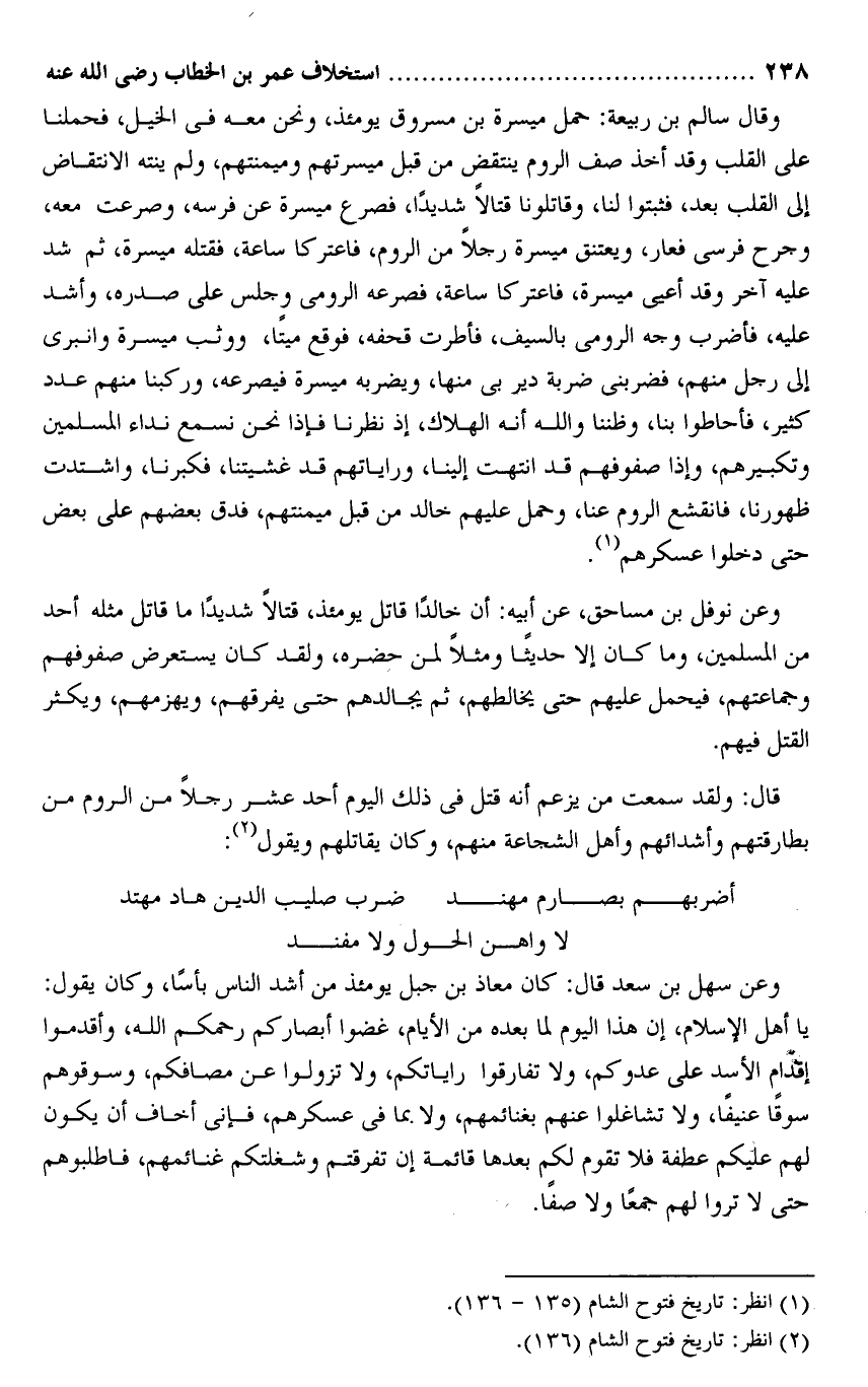 (2) انظر: تاريخ فتوح الشام (136) .