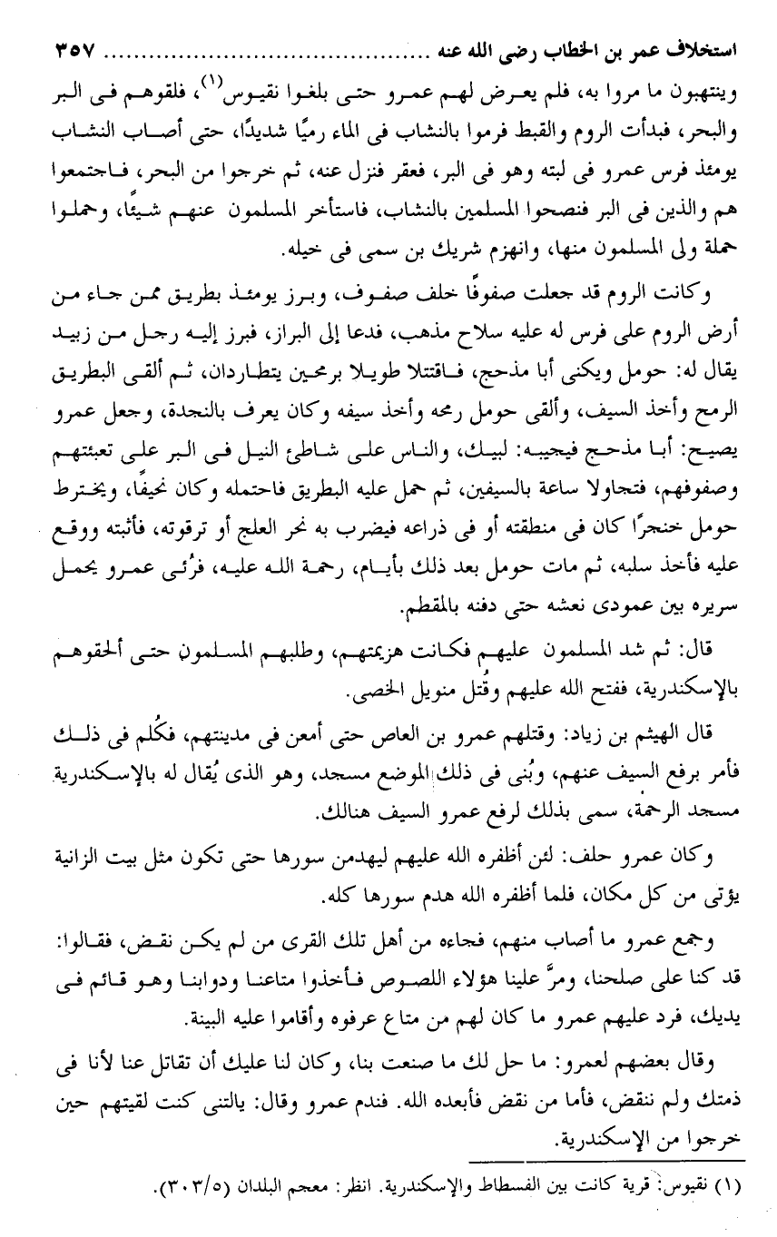 قال الهيثم بن زياد: وقتلهم عمرو بن العاص حتى أمعن فى مدينتهم، فكلم فى ذلك فأمر برفع السيف عنهم، وبنى فى ذلك الموضع مسجد، وهو الذى يقال له بالإسكندرية مسجد الرحمة، سمى بذلك لرفع عمرو السيف هنالك.