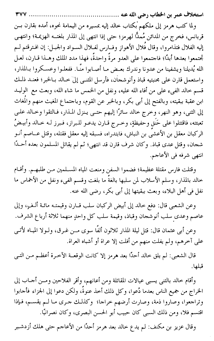 قال الشعبى: لم يلق خالد أحدا بعد هرمز إلا كانت الوقعة الآخرة أعظم من التى قبلها.