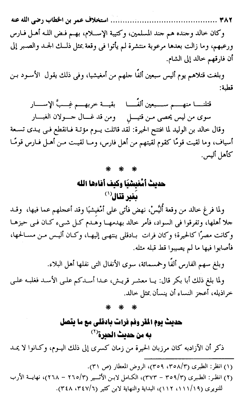 وكان خالد وجنده هم جند المسلمين، وكتيبة الإسلام، بهم فض الله أهل فارس ورعبهم، وما زالت بعدها مرعوبة منتشرة لم يأتوا فى وقعة بمثل ذلك الجد والصبر إلى أن فارقهم خالد إلى الشام.