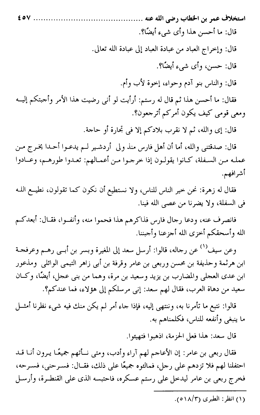 فقال: ما أحسن هذا ثم قال له رستم: أرأيت لو أنى رضيت هذا الأمر وأجبتكم إليه ومعى قومى كيف يكون أمركم أترجعون؟.