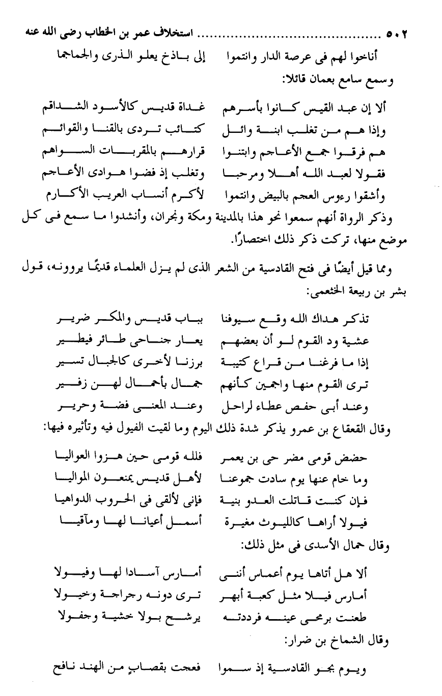 ومما قيل أيضا فى فتح القادسية من الشعر الذى لم يزل العلماء قديما يروونه، قول بشر بن ربيعة الخثعمى: