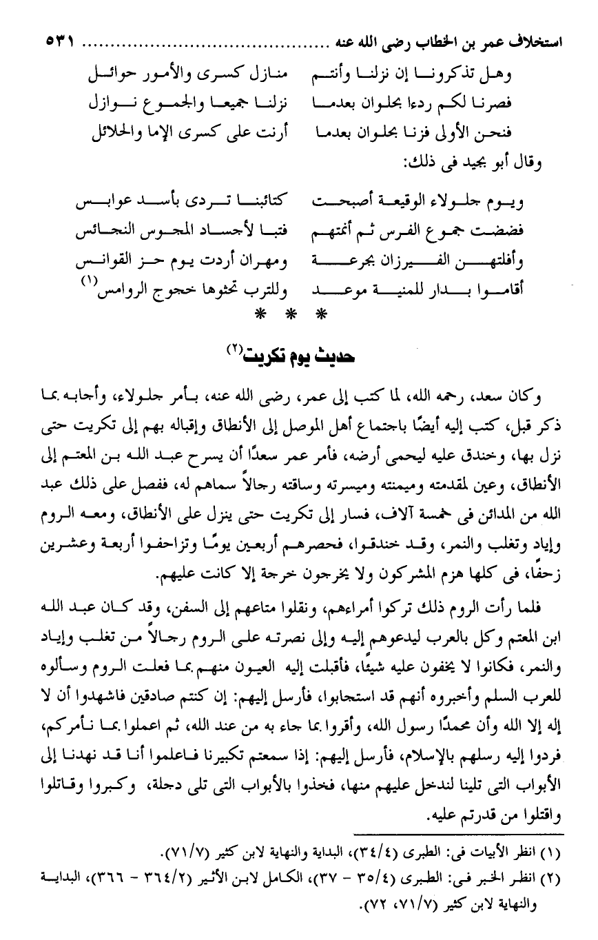 (2) انظر الخبر فى: الطبرى (4/ 35- 37) ، الكامل لابن الأثير (2/ 364- 366) ، البداية والنهاية لابن كثير (7/ 71، 72) .