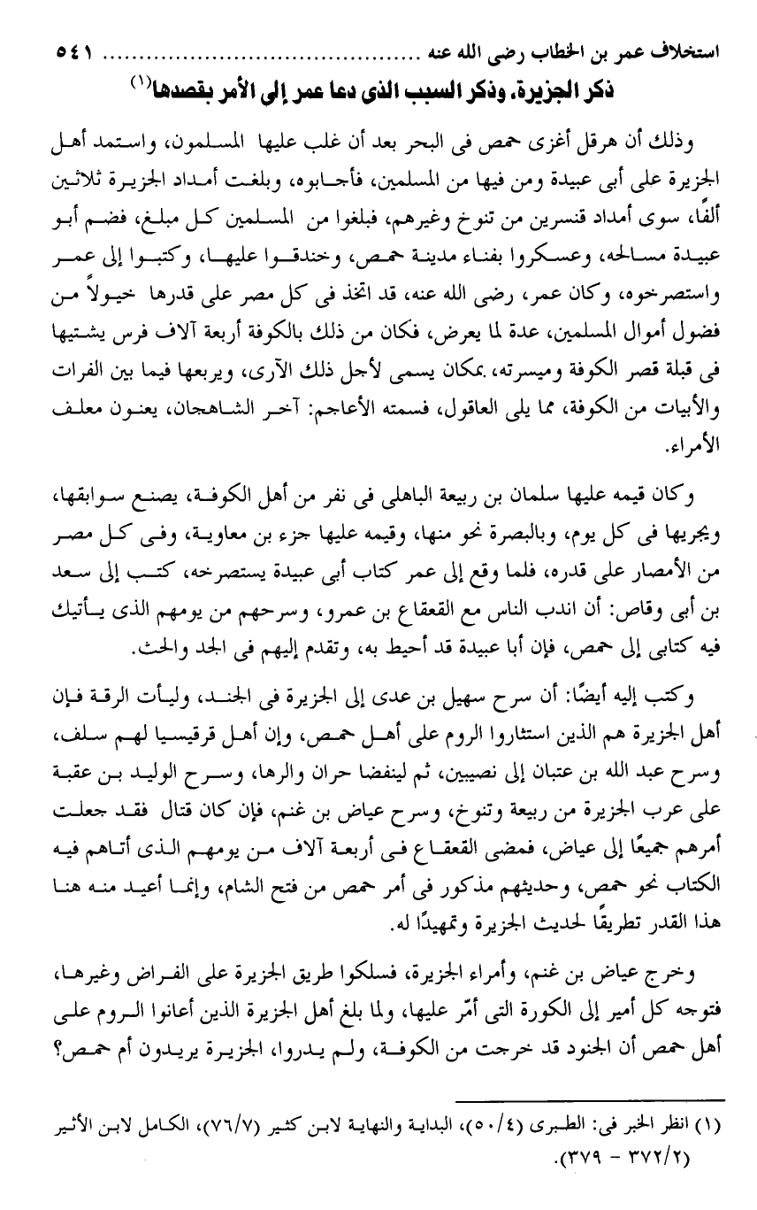 ذكر الجزيرة، وذكر السبب الذى دعا عمر إلى الأمر بقصدها «1»
