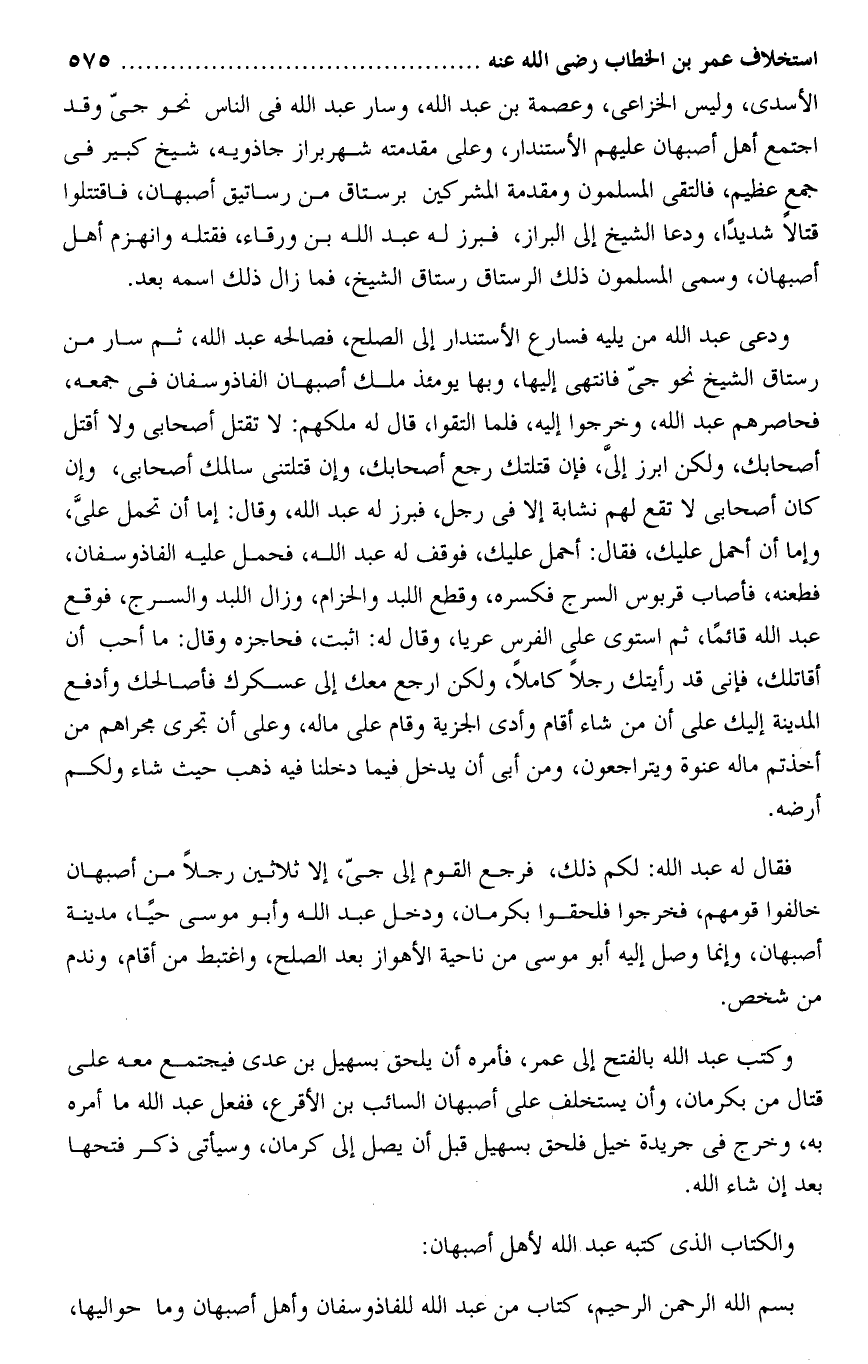بسم الله الرحمن الرحيم، كتاب من عبد الله للفاذوسفان وأهل أصبهان وما حواليها،