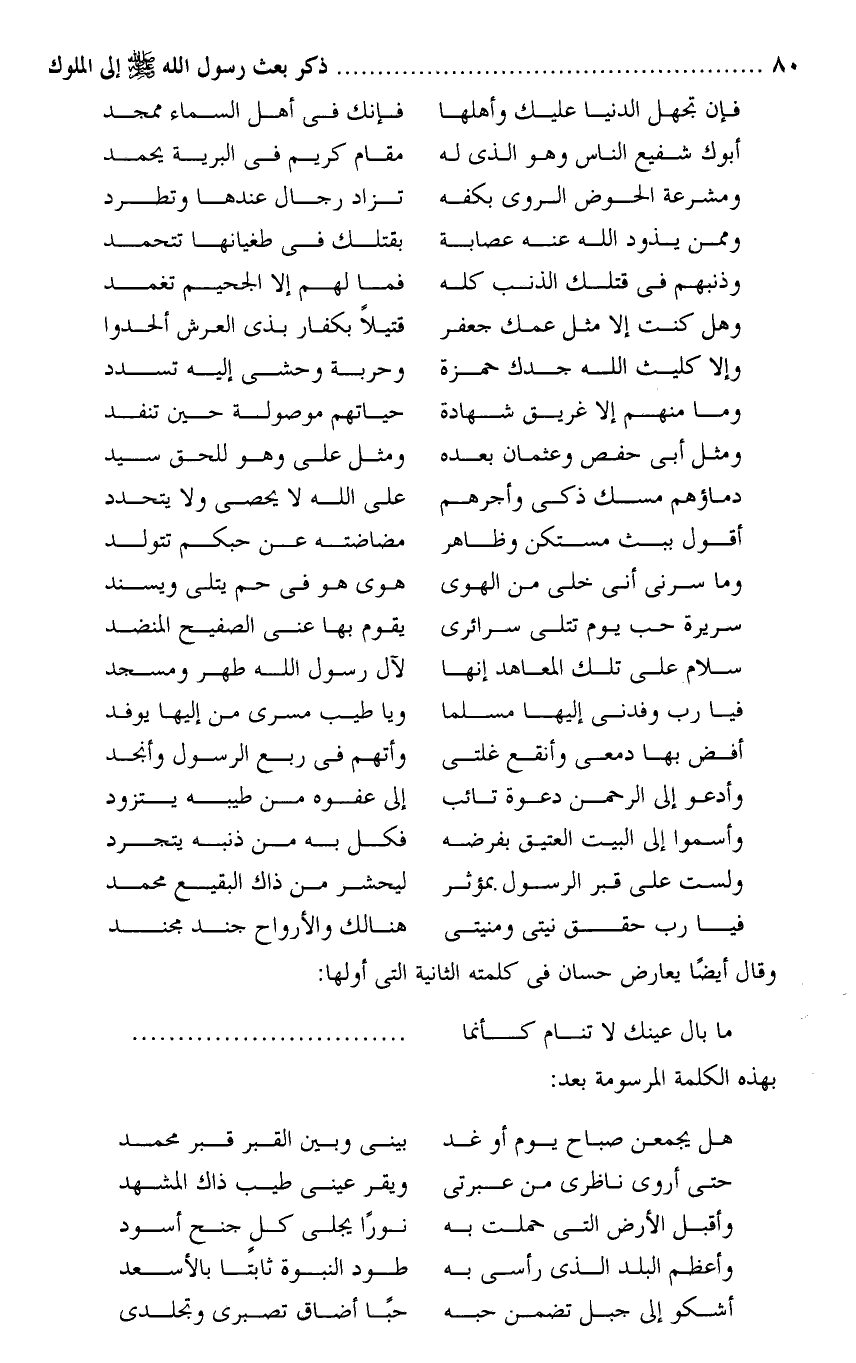 وقال أيضا يعارض حسان فى كلمته الثانية التى أولها: