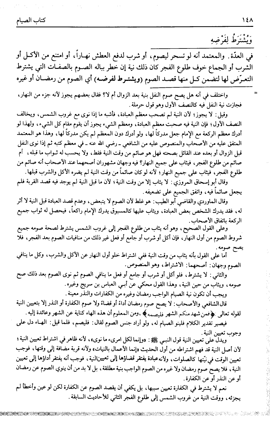 (وَيُشْتَرَطُ لِفَرْضِهِ) أَيْ الصَّوْمِ مِنْ رَمَضَانَ أَوْ غَيْرِهِ