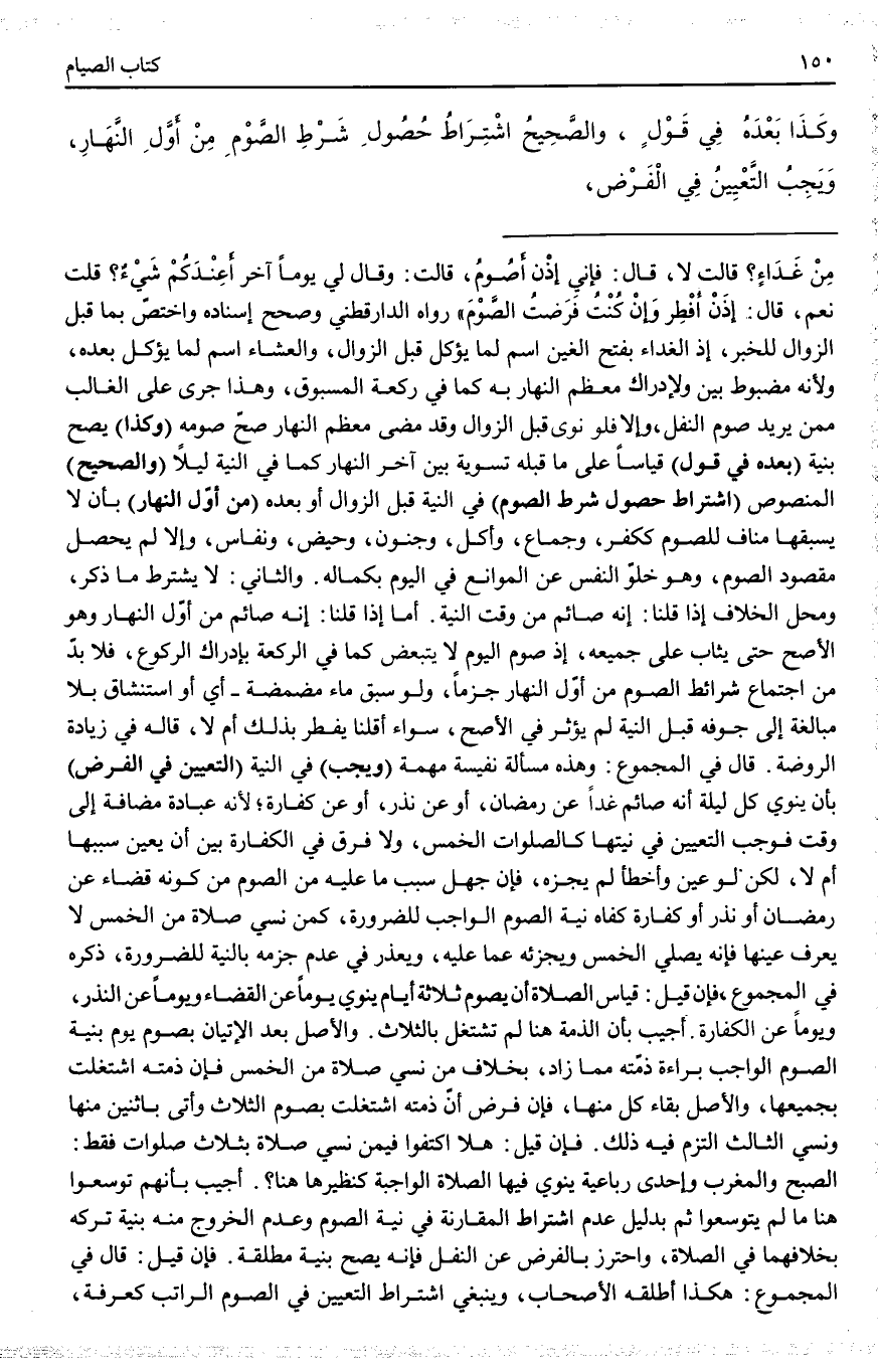 أُجِيبَ بِأَنَّهُمْ تَوَسَّعُوا هُنَا مَا لَمْ يَتَوَسَّعُوا ثَمَّ بِدَلِيلِ عَدَمِ اشْتِرَاطِ الْمُقَارَنَةِ فِي نِيَّةِ الصَّوْمِ وَعَدَمِ الْخُرُوجِ مِنْهُ بِنِيَّةِ تَرْكِهِ بِخِلَافِهِمَا فِي الصَّلَاةِ، وَاحْتُرِزَ بِالْفَرْضِ عَنْ النَّفْلِ فَإِنَّهُ يَصِحُّ بِنِيَّةٍ مُطْلَقَةٍ. فَإِنْ قِيلَ: قَالَ فِي الْمَجْمُوعِ: هَكَذَا أَطْلَقَهُ الْأَصْحَابُ، وَيَنْبَغِي اشْتِرَاطُ التَّعْيِينِ فِي الصَّوْمِ الرَّاتِبِ كَعَرَفَةَ،