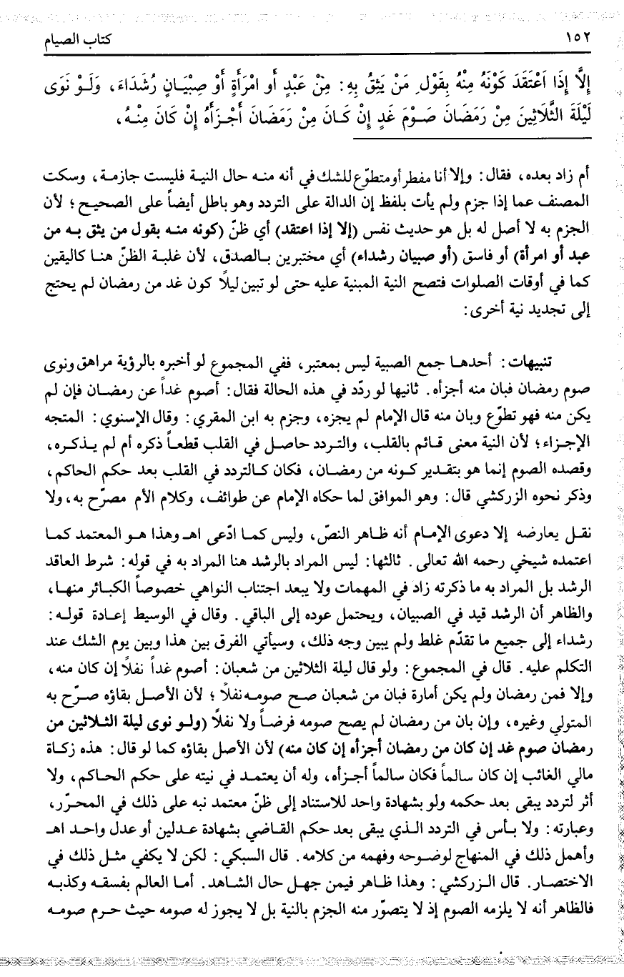 وَأُهْمِلَ ذَلِكَ فِي الْمِنْهَاجِ لِوُضُوحِهِ وَفَهْمِهِ مِنْ كَلَامِهِ. قَالَ السُّبْكِيُّ: لَكِنْ لَا يَكْفِي مِثْلُ ذَلِكَ فِي الِاخْتِصَارِ. قَالَ الزَّرْكَشِيُّ: وَهَذَا ظَاهِرٌ فِيمَنْ جَهِلَ حَالَ الشَّاهِدِ. أَمَّا الْعَالِمُ بِفِسْقِهِ وَكَذِبِهِ فَالظَّاهِرُ أَنَّهُ لَا يَلْزَمُهُ الصَّوْمُ إذْ لَا يُتَصَوَّرُ مِنْهُ الْجَزْمُ بِالنِّيَّةِ بَلْ لَا يَجُوزُ لَهُ صَوْمُهُ حَيْثُ حَرُمَ صَوْمُهُ