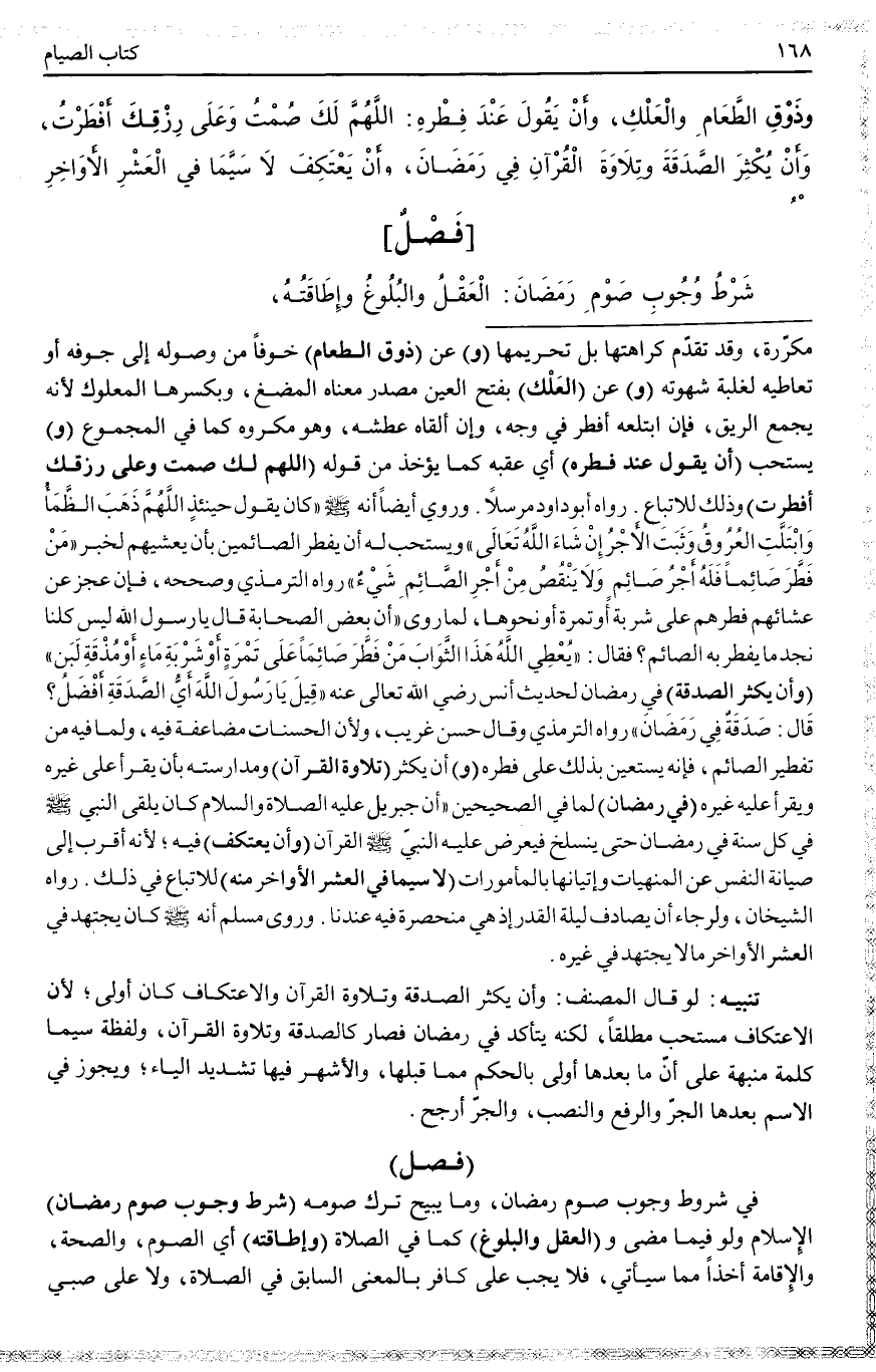 فَصْلٌ شَرْطُ وُجُوبِ صَوْمِ رَمَضَانَ: الْعَقْلُ وَالْبُلُوغُ وَإِطَاقَتُهُ،