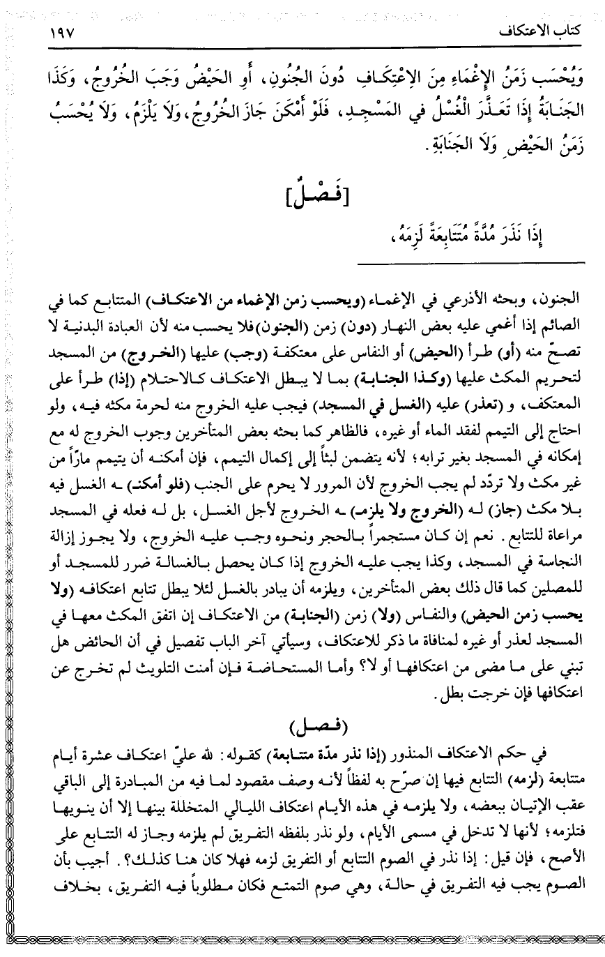 [فَصْلٌ فِي حُكْمِ الِاعْتِكَافِ الْمَنْذُورِ]