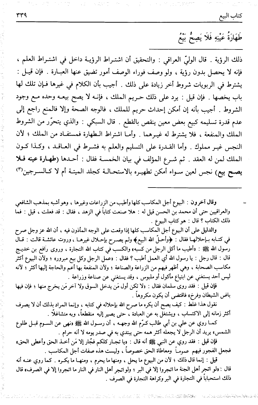 وَأُجِيبَ بِأَنَّ الْبِنَاءَ إنَّمَا يَدْخُلُ تَبَعًا فِي بَيْعِ الدَّارِ لِلطَّاهِرِ مِنْهَا كَالْحَجَرِ وَالْخَشَبِ، فَاغْتُفِرَ فِيهِ ذَلِكَ؛ لِأَنَّهُ مِنْ مَصَالِحِهَا كَالْحَيَوَانِ يَصِحُّ بَيْعُهُ وَبِبَاطِنِهِ النَّجَاسَةُ، وَيَنْزِلُ كَلَامُهُمْ عَلَى بَيْعِ الْآجُرِّ مُنْفَرِدًا، وَفِي هَذَا الْجَوَابِ نَظَرٌ كَمَا قَالَهُ بَعْضُ الْمُتَأَخِّرِينَ.
