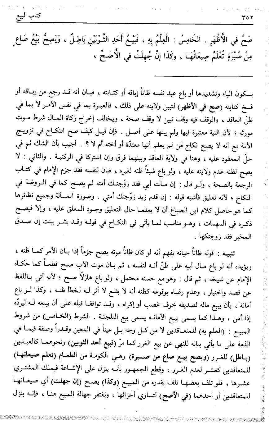 تَنْبِيهٌ: قَوْلُهُ: بِمِلْءِ كَذَا فِي الْمُحَرَّرِ مَجْرُورٌ بِالْحَرْفِ فَيَكُونُ مِنْ صُوَرِ الثَّمَنِ كَمَا تَقَرَّرَ، وَاَلَّذِي فِي الرَّوْضَة وَأَصْلِهَا مِلْءَ مَنْصُوبٌ وَلَا حَرْفَ مَعَهُ فَيَكُونُ مِنْ صُوَرِ الْمَبِيعِ وَهُوَ أَحْسَنُ.