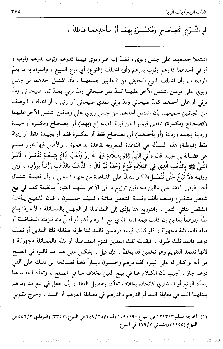 ـــــــــــــــــــــــــــــQوَإِنَّمَا الْمُرَادُ اخْتَلَفَ جِنْسُ الْمَبِيعِ بِأَنْ يَكُونَ مَعَ الرِّبَوِيِّ جِنْسٌ آخَرُ كَمَا يَظْهَرُ ذَلِكَ مِنْ مِثَالِهِ. فَلَوْ عَبَّرَ بِقَوْلِهِ وَاخْتَلَفَ الْمَبِيعُ جِنْسًا لَاسْتَقَامَ.
