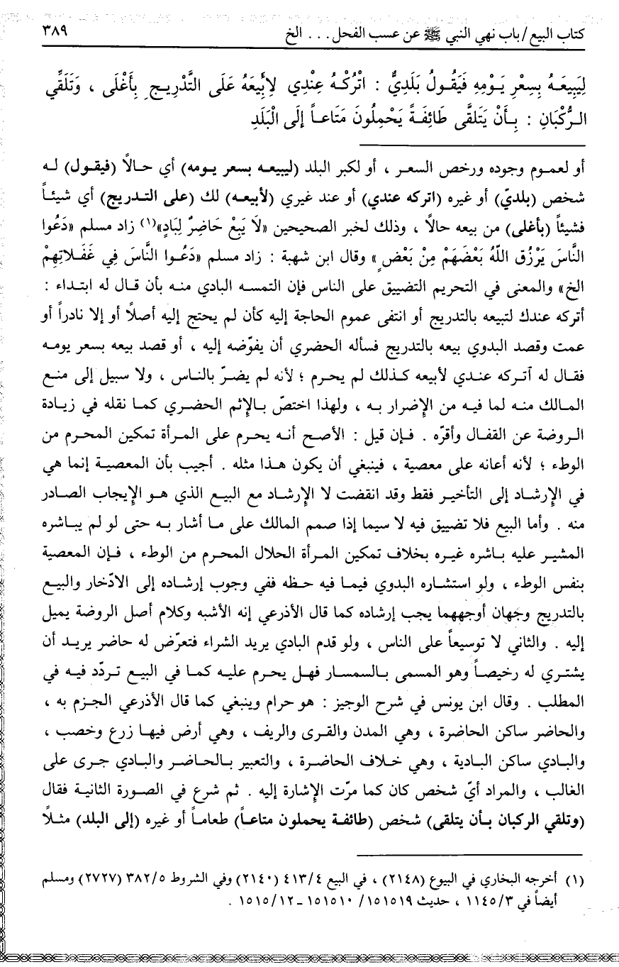 ثُمَّ شَرَعَ فِي الصُّورَةِ الْخَامِسَةِ، فَقَالَ (وَالشِّرَاءِ عَلَى الشِّرَاءِ) فِي زَمَنِ الْخِيَارِ كَمَا مَرَّ (بِأَنْ) أَوْلَى مِنْهُ كَأَنْ (يَأْمُرَ الْبَائِعَ بِالْفَسْخِ لِيَشْتَرِيَهُ) بِأَكْثَرَ مِنْ ثَمَنِهِ، وَكِلَا الصُّورَتَيْنِ حَرَامٌ، وَلَوْ رَأَى الْمُشْتَرِي فِي الْأُولَى وَالْبَائِعُ فِي الثَّانِيَةِ مَغْبُونًا لِعُمُومِ خَبَرِ الصَّحِيحَيْنِ «لَا يَبِعْ بَعْضُكُمْ عَلَى بَيْعِ بَعْضٍ» زَادَ النَّسَائِيُّ حَتَّى يَبْتَاعَ أَوْ يَذَرَ، وَفِي مَعْنَاهُ الشِّرَاءُ عَلَى الشِّرَاءِ، وَالْمَعْنَى فِيهِمَا الْإِيذَاءُ، وَفِي مَعْنَى الْبَيْعِ عَلَى الْبَيْعِ مَا نَصَّ عَلَيْهِ الشَّافِعِيُّ مِنْ نَهْيِ الرَّجُلِ أَنْ يَبِيعَ الْمُشْتَرِي فِي مَجْلِسِ الْعَقْدِ سِلْعَةً مِثْلَ الَّتِي اشْتَرَاهَا خَشْيَةَ أَنْ يَرُدَّ الْأُولَى وَمِثْلُ خِيَارِ الْمَجْلِسِ فِي ذَلِكَ خِيَارُ الشَّرْطِ، وَأَلْحَقَ الْمَاوَرْدِيُّ بِالشِّرَاءِ عَلَى الشِّرَاءِ طَلَبَ السِّلْعَةِ مِنْ الْمُشْتَرِي بِزِيَادَةِ رِبْحٍ وَالْبَائِعُ حَاضِرٌ لِأَدَائِهِ إلَى الْفَسْخِ أَوْ النَّدَمِ ثُمَّ مَحَلُّ التَّحْرِيمِ عِنْدَ عَدَمِ الْإِذْنِ، فَلَوْ أَذِنَ الْبَائِعُ فِي الْبَيْعِ عَلَى بَيْعِهِ أَوْ الْمُشْتَرِي فِي الشِّرَاءِ عَلَى شِرَائِهِ لَمْ يَحْرُمْ؛ لِأَنَّ الْحَقَّ لَهُمَا وَقَدْ أَسْقَطَاهُ، وَلِمَفْهُومِ الْخَبَرِ السَّابِقِ، هَذَا كَمَا قَالَ الْأَذْرَعِيُّ إنْ كَانَ الْآذِنُ مَالِكًا، فَإِنْ كَانَ وَلِيًّا أَوْ وَصِيًّا أَوْ وَكِيلًا أَوْ نَحْوَهُ فَلَا عِبْرَةَ بِإِذْنِهِ إنْ كَانَ فِيهِ ضَرَرٌ عَلَى الْمَالِكِ، وَلَا يُشْتَرَطُ لِلتَّحْرِيمِ تَحَقُّقُ مَا وَعَدَ بِهِ مِنْ الْبَيْعِ أَوْ الشِّرَاءِ لِوُجُودِ الْإِيذَاءِ بِكُلِّ تَقْدِيرٍ خِلَافًا لِابْنِ النَّقِيبِ فِي اشْتِرَاطِهِ.