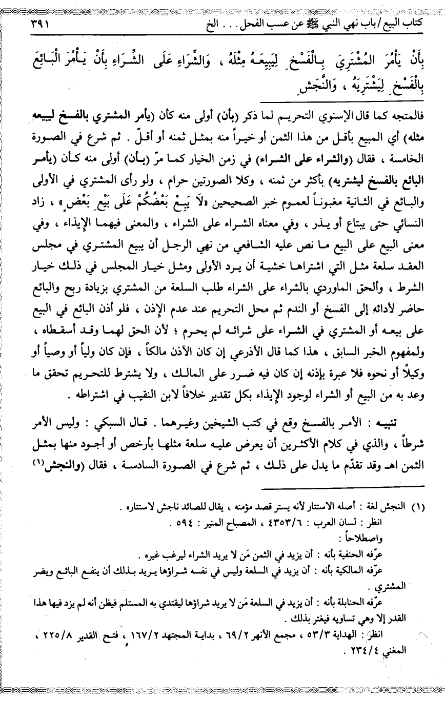 ـــــــــــــــــــــــــــــQوَشَرْطُ التَّحْرِيمِ فِي جَمِيعِ الْمَنَاهِي عِلْمُ النَّهْيِ بِهَا حَتَّى فِي النَّجْشِ كَمَا نَقَلَ عَنْ نَصِّ الشَّافِعِيِّ خِلَافًا لِمَا جَرَى عَلَيْهِ ابْنُ الْمُقْرِي تَبَعًا لِبَحْثِ الرَّافِعِيِّ.