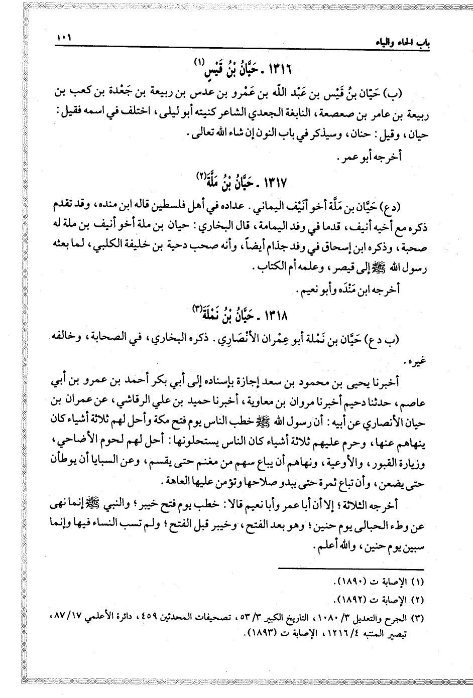 ب د ع: حيان بْن نملة أَبُو عمران الأنصاري ذكره البخاري، في الصحابة، وخالفه غيره.