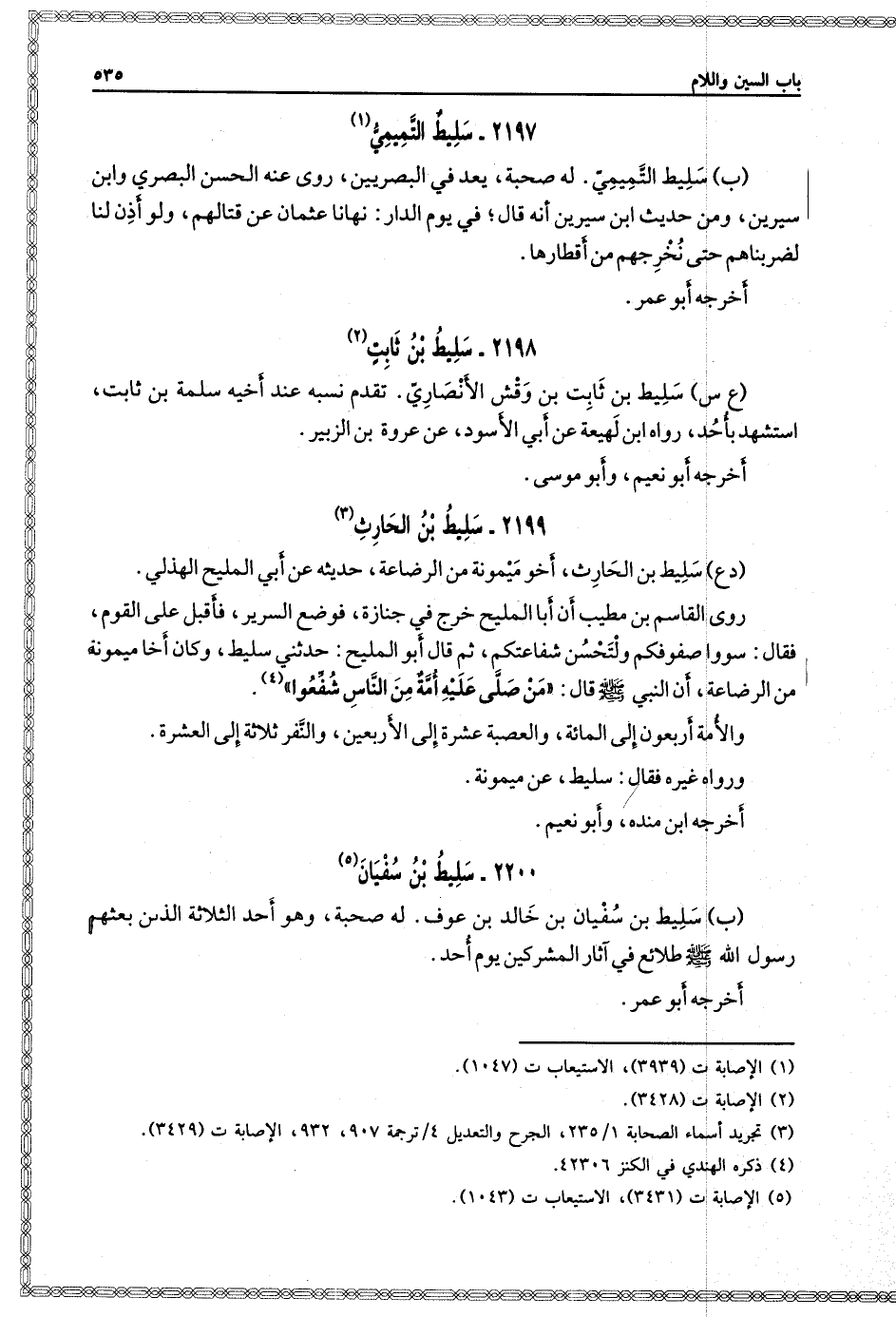 ب: سليط التميمي له صحبة يعد في البصريين، روى عنه الحسن البصري، وابن سيرين، ومن حديث ابن سيرين، أَنَّهُ قال: في يَوْم الدار: نهانا عثمان عن قتالهم، لو أذن لنا لضربناهم حتى نخرجهم من أقطارها.
