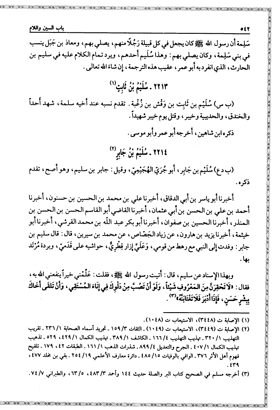 (٥٧٦) أخبرنا أَبُو يَاسِرِ بْنُ أَبِي الدَّقَّاقِ، أخبرنا عَلِيُّ بْنُ مُحَمَّدِ بْنِ الْحُسَيْنِ بْنِ حَسْنُونٍ، أخبرنا أَحْمَدُ بْنُ عَلِيِّ بْنِ الْحَسَنِ بْنِ أَبِي عُثْمَانَ، أخبرنا الْقَاضِي أَبُو الْقَاسِمِ الْحَسَنُ بْنُ الْحَسَنِ بْنِ الْمُنْذِرِ، أخبرنا الْحُسَيْنُ بْنُ صَفْوَانَ، أخبرنا أَبُو بَكْرٍ عَبْدُ اللَّهِ بْنُ مُحَمَّدٍ الْقُرَشِيُّ، أخبرنا أَبُو خَيْثَمَةَ، أخبرنا يَزِيدُ بْنُ هَارُونَ، عن زِيَادٍ الْجَصَّاصِ، عن مُحَمَّدِ ابْنِ سِيرِينَ، قَالَ: قَالَ سُلَيْمُ بْنُ جَابِرٍ وَفَدْتُ إِلَى النَّبِيِّ مَعَ رَهْطٍ مِنْ قَوْمِي، وَعَلَيَّ إِزَارٌ قِطْرِيٌّ، حَوَاشِيهِ عَلَى قَدَمَيَّ، وَبُرْدَةٌ مُرْتَدٌّ بِهَا