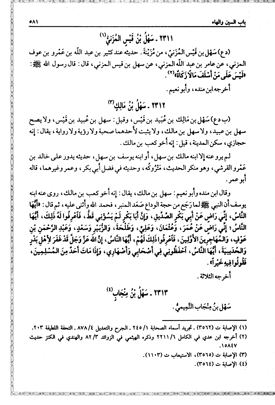 ب د ع: سهل بْن مالك بْن عبيد بْن قيس وقيل: سهل بْن عبيد بْن قيس، ولا يصح سهل بْن عبيد، ولا سهل بْن مالك، ولا يثبت لأحدهما صحبة، ولا رؤية ولا رواية، يقال: إنه حجازي، سكن المدينة، قيل: إنه أخو كعب بْن مالك.