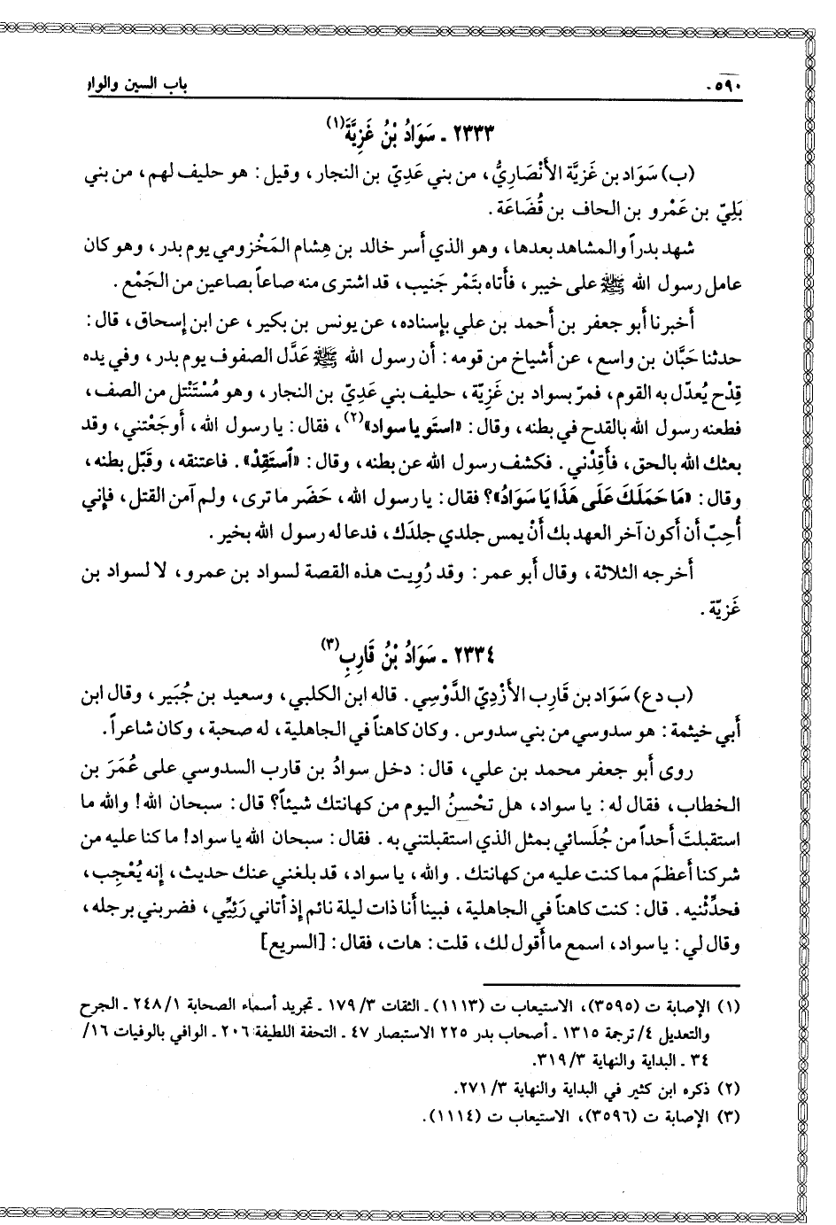 ب: سواد بْن غزية الأنصاري من بني عدي بْن النجار، وقيل: هو حليف لهم، من بني بلي بْن عمرو بْن الحاف بْن قضاعة.