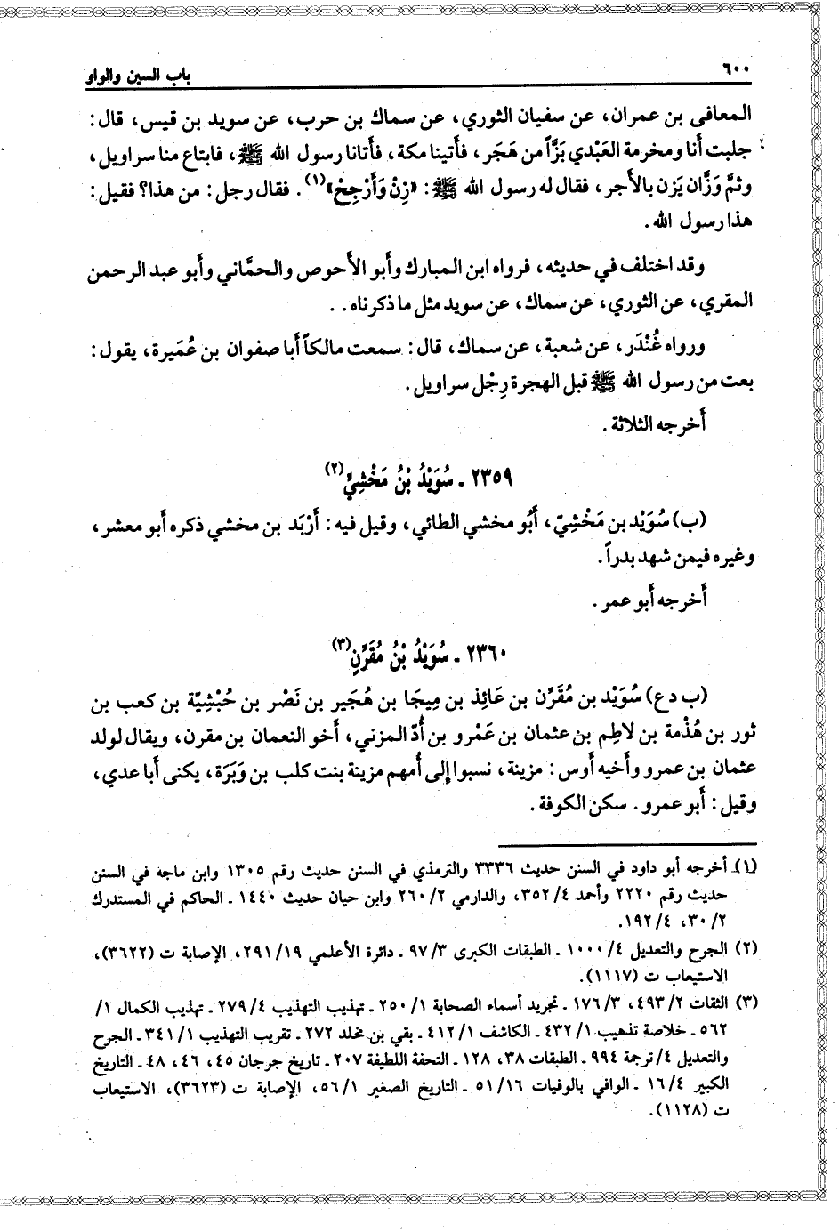 (٦٠٥) أخبرنا إِبْرَاهِيمُ بْنُ مُحَمَّدِ بْنِ مِهْرَانَ، وَغَيْرُ وَاحِدٍ، بِإِسْنَادِهِمْ إِلَى أَبِي عِيسَى التِّرْمِذِيِّ، قَالَ: حدثنا أَبُو كُرَيْبٍ، حدثنا الْمُحَارِبِيُّ، عن شُعْبَةَ، عن حُصَيْنٍ، عن هِلالِ بْنِ يَسَافٍ، عن سُوَيْدِ بْنِ مُقَرِّنٍ، قَالَ: " لَقَدْ رَأَيْتُنَا سَبْعَةَ إِخْوَةٍ مَا لَنَا خَادِمٌ إِلا وَاحِدَةٌ، فَلَطَمَهَا أَحَدُنَا، فَأَمَرَ النَّبِيُّ صَلَّى اللَّهُ عَلَيْهِ وَسَلَّمَ أَنْ نَعْتِقَهَا " وروى عنه، أَنَّهُ قال: سمعت رَسُول اللَّهِ صَلَّى اللَّهُ عَلَيْهِ وَسَلَّمَ يقول: " من قتل دون ماله فهو شهيد ".