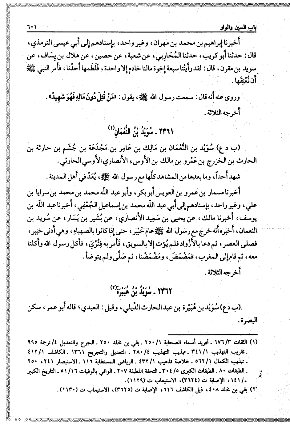 ب د ع: سويد بْن النعمان بْن مالك بْن عامر بن مجدعة بْن جشم بْن حارثة بْن الحارث بْن الخزرج بْن عمرو بْن مالك بْن الأوس الأنصاري الأوسي الحارثي.