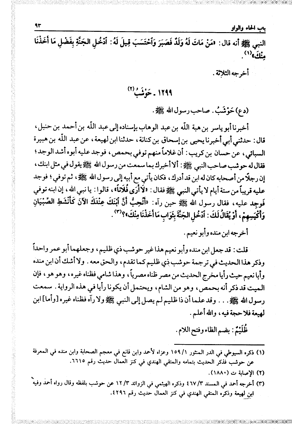أَخْرَجَهُ ابْنُ مَنْدَهْ، وَأَبُو نُعَيْمٍ قلت: قد جعل ابن منده، وَأَبُو نعيم، هذا غير حوشب ذي ظليم، وجعلهما أَبُو عمر واحدًا وذكر هذا الحديث في ترجمة حوشب ذي ظليم كما تقدم، والحق معه.
