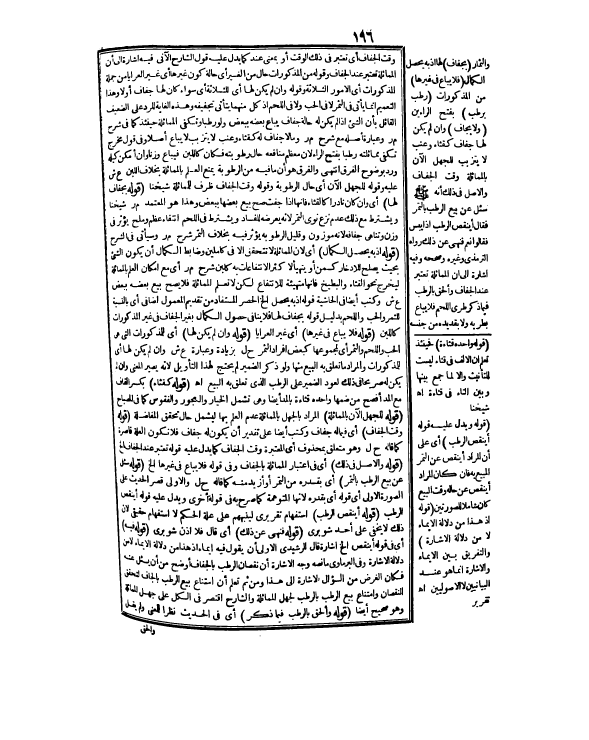 وَعِبَارَةُ أَصْلِهِ مَعَ شَرْحِ م ر وَمَا لَا جَفَافَ لَهُ كَقِثَّاءٍ، وَعِنَبٍ لَا يَتَزَبَّبُ لَا يُبَاعُ أَصْلًا، وَفِي قَوْلٍ مُخَرَّجٍ تَكْفِي مُمَاثَلَتُهُ رَطْبًا بِفَتْحِ الرَّاءِ؛ لِأَنَّ مُعْظَمَ مَنَافِعِهِ حَالَ رُطُوبَتِهِ فَكَانَ كَاللَّبَنِ فَيُبَاعُ وَزْنًا، وَإِنْ أَمْكَنَ كَيْلُهُ، وَرُدَّ بِوُضُوحِ الْفَرْقِ انْتَهَى وَالْفَرْقُ هُوَ أَنَّ مَا فِيهِ مِنْ الرُّطُوبَةِ يَمْنَعُ الْعِلْمَ بِالْمُمَاثَلَةِ بِخِلَافِ اللَّبَنِ ع ش عَلَيْهِ،
