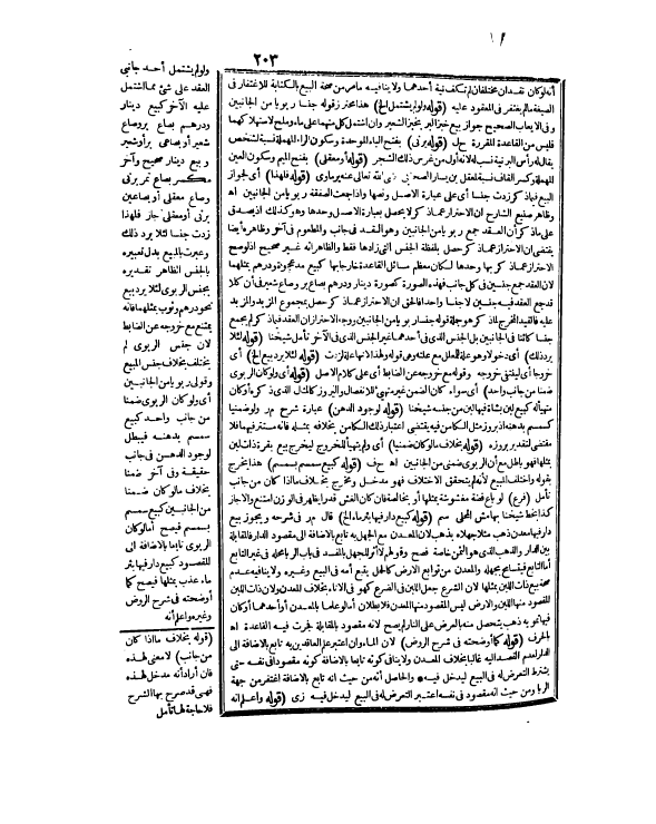 وَلَوْ لَمْ يَشْتَمِلْ أَحَدُ جَانِبَيْ الْعَقْدِ عَلَى شَيْءٍ مِمَّا اشْتَمَلَ عَلَيْهِ الْآخَرُ كَبَيْعِ دِينَارٍ، وَدِرْهَمٍ بِصَاعِ بُرٍّ وَصَاعِ شَعِيرٍ، أَوْ بِصَاعَيْ بُرٍّ، أَوْ شَعِيرٍ وَبَيْعِ دِينَارٍ صَحِيحٍ، وَآخَرَ مُكَسَّرٍ بِصَاعِ تَمْرٍ بَرْنِيِّ وَصَاعٍ مَعْقِلِيٍّ، أَوْ بِصَاعَيْنِ بُرْنِيٍّ، أَوْ مَعْقِلِيٍّ جَازَ فَلِهَذَا زِدْت جِنْسًا لِئَلَّا يُرَدَّ ذَلِكَ وَعَبَّرْت بِالْمَبِيعِ بَدَلَ تَعْبِيرِهِ بِالْجِنْسِ الظَّاهِرِ تَقْدِيرُهُ بِجِنْسِ الرِّبَوِيِّ لِئَلَّا يُرَدَّ بَيْعُ نَحْوِ دِرْهَمٍ، وَثَوْبٍ بِمِثْلِهِمَا فَإِنَّهُ مُمْتَنِعٌ مَعَ خُرُوجِهِ عَنْ الضَّابِطِ؛ لِأَنَّ جِنْسَ الرِّبَوِيِّ لَمْ يَخْتَلِفْ بِخِلَافِ جِنْسِ الْمَبِيعِ، وَقَوْلِي رِبَوِيًّا مِنْ الْجَانِبَيْنِ أَيْ: وَلَوْ كَانَ الرِّبَوِيُّ ضِمْنًا مِنْ جَانِبٍ وَاحِدٍ كَبَيْعِ سِمْسِمٍ بِدُهْنِهِ فَيَبْطُلُ لِوُجُودِ الدُّهْنِ فِي جَانِبٍ حَقِيقَةً، وَفِي آخَرَ ضِمْنًا بِخِلَافِ مَا لَوْ كَانَ ضِمْنًا مِنْ الْجَانِبَيْنِ كَبَيْعِ سِمْسِمٍ بِسِمْسِمٍ فَيَصِحُّ أَمَّا لَوْ كَانَ الرِّبَوِيُّ تَابِعًا بِالْإِضَافَةِ إلَى الْمَقْصُودِ كَبَيْعِ دَارٍ فِيهَا بِئْرُ مَاءٍ عَذْبٍ بِمِثْلِهَا فَيَصِحُّ كَمَا أَوْضَحْتُهُ فِي شَرْحِ الرَّوْضِ وَغَيْرِهِ.