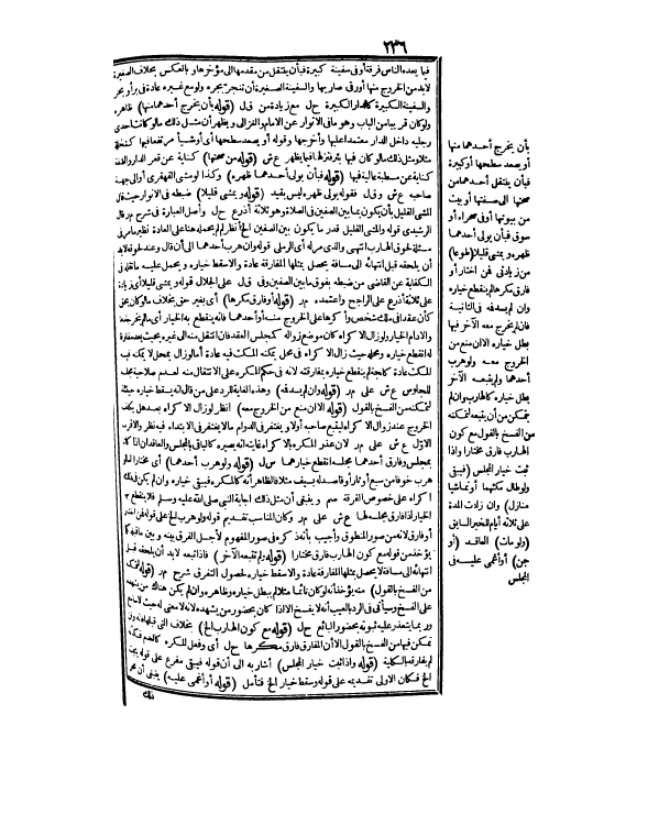 ـــــــــــــــــــــــــــــQفِيمَا يَعُدُّهُ النَّاسُ فُرْقَةً أَوْ فِي سَفِينَةٍ كَبِيرَةٍ فَبِأَنْ يَنْتَقِلَ مِنْ مُقَدَّمِهَا إلَى مُؤَخَّرِهَا وَبِالْعَكْسِ بِخِلَافِ الصَّغِيرَةِ لَا بُدَّ مِنْ الْخُرُوجِ مِنْهَا أَوْ رُقِيِّ صَارِيَهَا، وَالسَّفِينَةُ الصَّغِيرَةُ أَنْ تَنْجَرَّ بِجَرِّهِ وَلَوْ مَعَ غَيْرِهِ عَادَةً فِي بَرٍّ أَوْ بَحْرٍ، وَالسَّفِينَةُ الْكَبِيرَةُ كَالدَّارِ الْكَبِيرَةِ. ح ل مَعَ زِيَادَةٍ مِنْ قِ ل (قَوْلُهُ: بِأَنْ يَخْرُجَ أَحَدُهُمَا مِنْهَا) ظَاهِرُهُ وَلَوْ كَانَ قَرِيبًا مِنْ الْبَابِ وَهُوَ مَا فِي الْأَنْوَارِ عَنْ الْإِمَامِ وَالْغَزَالِيِّ وَيَظْهَرُ أَنَّ مِثْلَ ذَلِكَ مَا لَوْ كَانَتْ إحْدَى رِجْلَيْهِ دَاخِلَ الدَّارِ مُعْتَمِدًا عَلَيْهَا وَأَخْرَجَهَا
