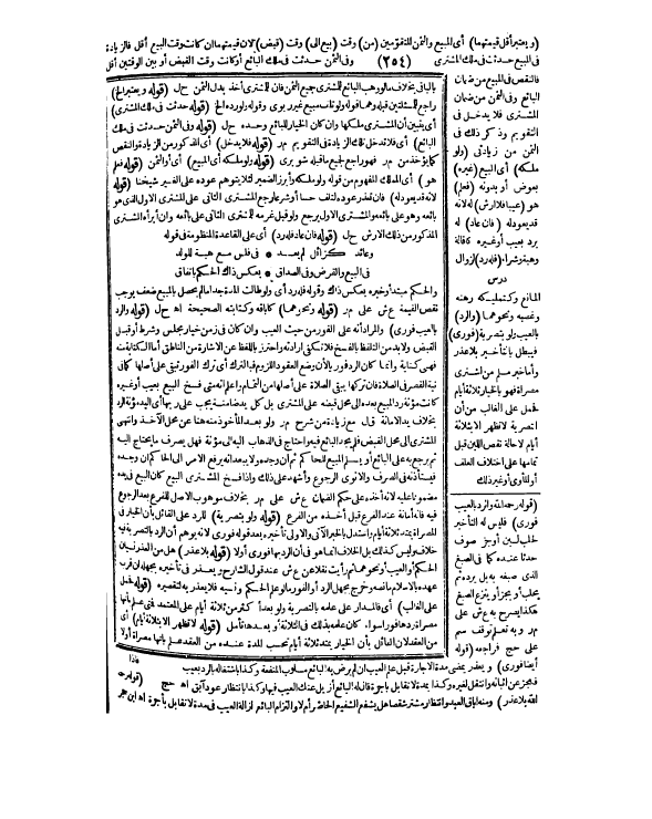 [دَرْسٌ] (وَالرَّدُّ) بِالْعَيْبِ وَلَوْ بِتَصْرِيَةٍ (فَوْرِيٌّ) فَيَبْطُلُ بِالتَّأْخِيرِ بِلَا عُذْرٍ وَأَمَّا خَبَرُ مُسْلِمٍ «مَنْ اشْتَرَى مُصَرَّاةً فَهُوَ بِالْخِيَارِ ثَلَاثَةَ أَيَّامٍ» فَحُمِلَ عَلَى الْغَالِبِ مِنْ أَنَّ التَّصْرِيَةَ لَا تَظْهَرُ إلَّا بِثَلَاثَةِ أَيَّامٍ لَا حَالَةَ نَقْصِ اللَّبَنِ قَبْلَ تَمَامِهَا عَلَى اخْتِلَافِ الْعَلَفِ أَوْ الْمَأْوَى أَوْ غَيْرِ ذَلِكَ