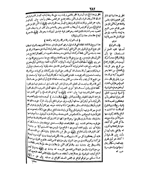 هَذَا شُرُوعٌ فِي الْأَلْفَاظِ الْمُطْلَقَةِ الَّتِي لَهَا مَدْلُولٌ شَرْعِيٌّ تُحْمَلُ عَلَيْهِ غَيْرُ مَعْنَاهَا اللُّغَوِيِّ. وَالتَّوْلِيَةُ اصْطِلَاحًا نَقْلُ جَمِيعِ الْمَبِيعِ إلَى الْمَوْلَى بِمِثْلِ الثَّمَنِ الْمِثْلِيِّ أَوْ قِيمَةِ الْمُتَقَوِّمِ بِلَفْظِ وَلَّيْتُك أَوْ مَا اُشْتُقَّ مِنْهُ.، وَالْإِشْرَاكُ نَقْلُ بَعْضِهِ بِنِسْبَتِهِ مِنْ الثَّمَنِ بِلَفْظِ أَشْرَكْتُك أَوْ مَا اُشْتُقَّ مِنْهُ وَمَعْنَاهُ لُغَةً تَصْيِيرُهُ شَرِيكًا.، وَالْمُرَابَحَةُ بَيْعٌ بِمِثْلِ الثَّمَنِ أَوْ مَا قَامَ عَلَيْهِ بِهِ مَعَ رِبْحٍ مُوَزَّعٍ عَلَى الْأَجْزَاءِ.، وَالْمُحَاطَّةُ بَيْعُ ذَلِكَ مَعَ حَطٍّ مِنْهُ مُوَزَّعٍ عَلَى الْأَجْزَاءِ اهـ شَوْبَرِيٌّ.