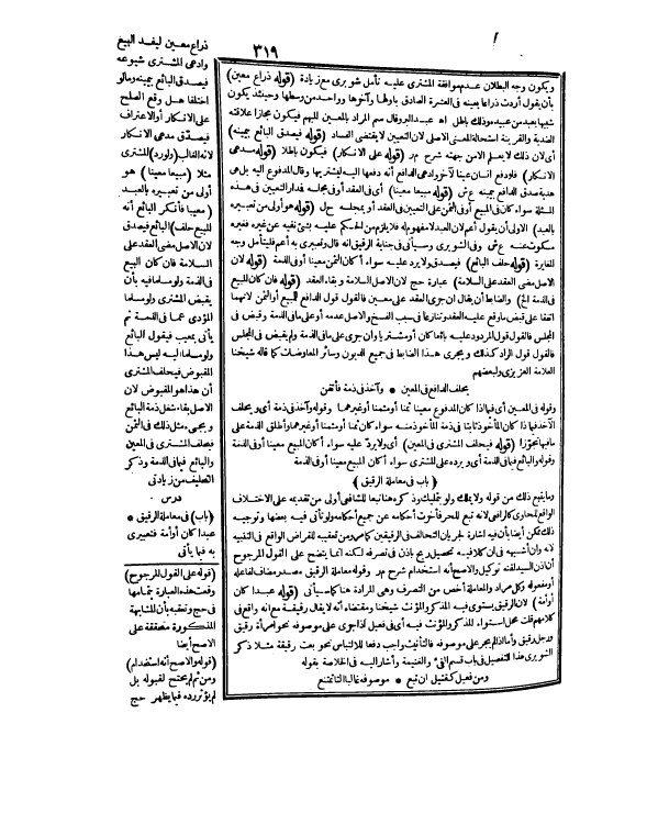 وَقَوْلُهُ: وَالْبَائِعُ فِيمَا فِي الذِّمَّةِ أَيْ وَيَرُدُّهُ عَلَى الْمُشْتَرِي سَوَاءٌ أَكَانَ الْمَبِيعُ مُعَيَّنًا أَوْ فِي الذِّمَّةِ. (بَابٌ فِي مُعَامَلَةِ الرَّقِيقِ)